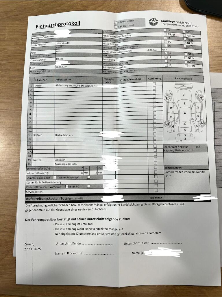 | Keine Gewähr auf die Angaben der Sonder- und Serienausstattung / keine mechanische Prüfung. Fahrzeug wurde unzerlegt expertisiert / keine Haftung für allfällige, nach Demontage bekanntwerdenden Mängel. Fahrzeugbereifung und Ausstattung gemäss Fotos / Fahrzeugkauf auf eigenes Risiko ab Platz ohne Nachwährschaft. – Div. kleine Kratzer am gesamten Fahrzeug. – Kratzer an der Felge vorne Rechts. – Abdeckung von rechtem Aussenspiegel beschädigt. – Service fällig. – MFK fällig. – 8-Fach Bereift. |