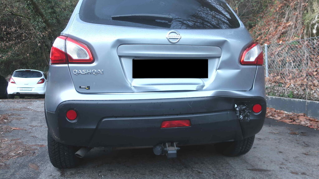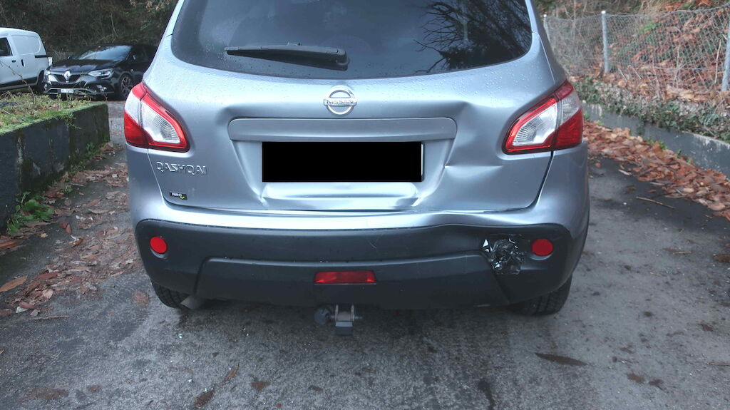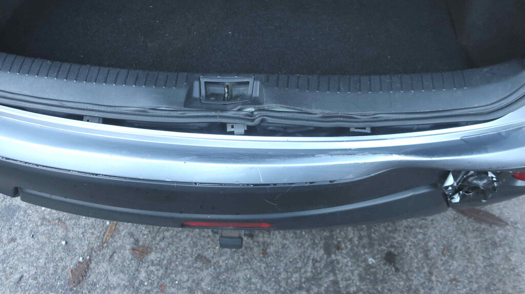 Choc arrière. Pare-chocs, hayon et jupe endommagés.