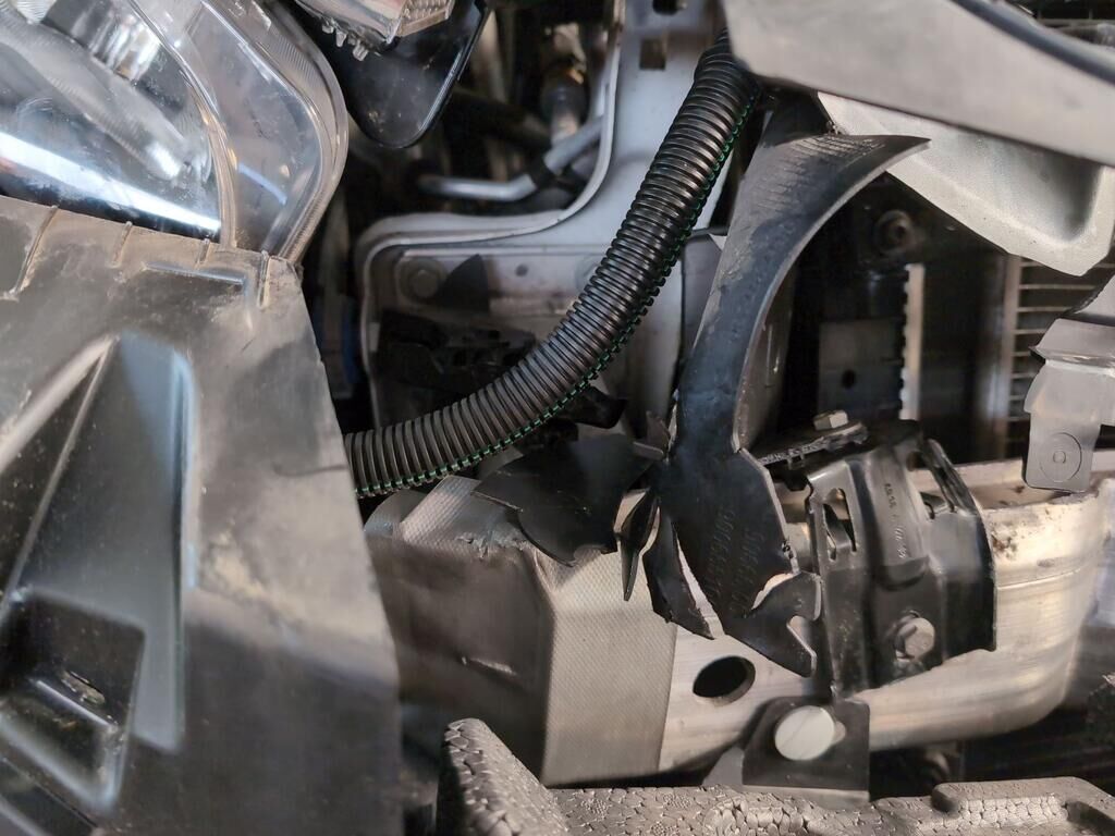 Aufprall in Fahrzeugfront mit Beschädigung von Stossstange, Pralldämpfer, Scheinwerfer, Kühler, Schlossträger, Auspuff, Motorhaube, Kotflügel, Türen sowie diversen Anbauteilen.