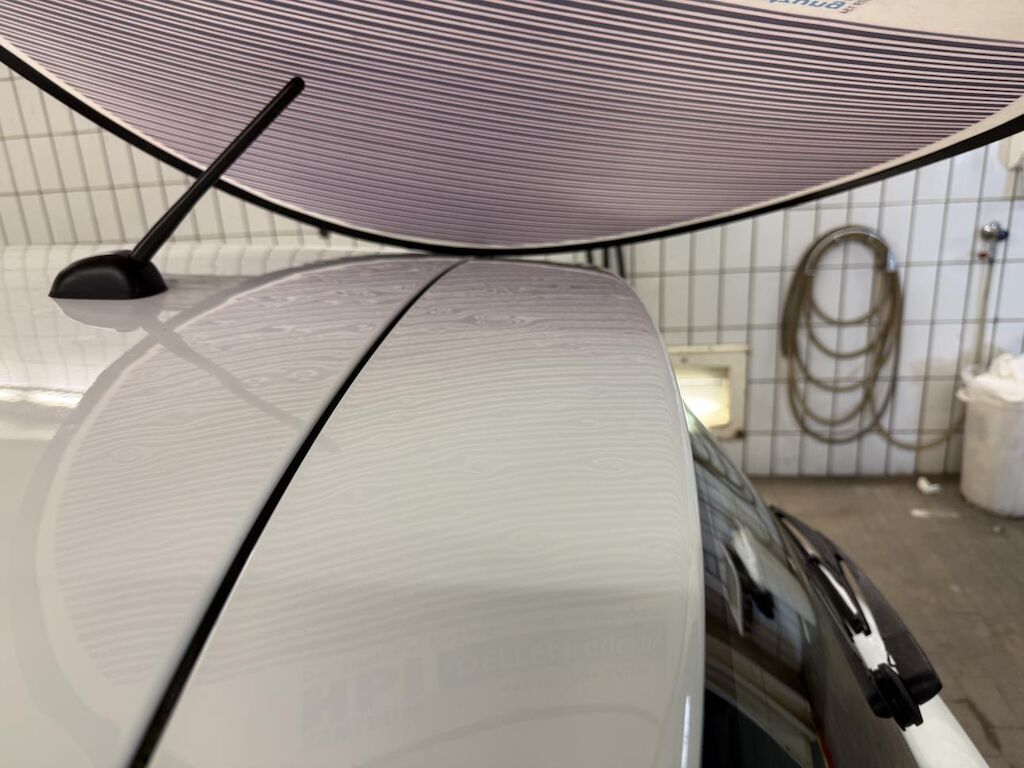 dabei wurde die Motorhaube, der Kotflügel links, der Kotflügel rechts, die Türe vorne links, die Türe hinten links, die Türe vorne rechts, die Türe hinten rechts, die Seitenwand links, die Seitenwand rechts, beide Dachrahmen, das Dach und die Heckklappe beschädigt.
