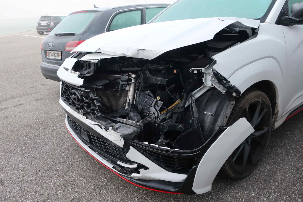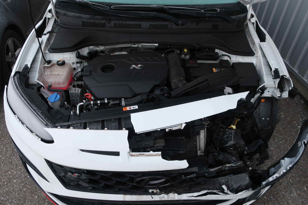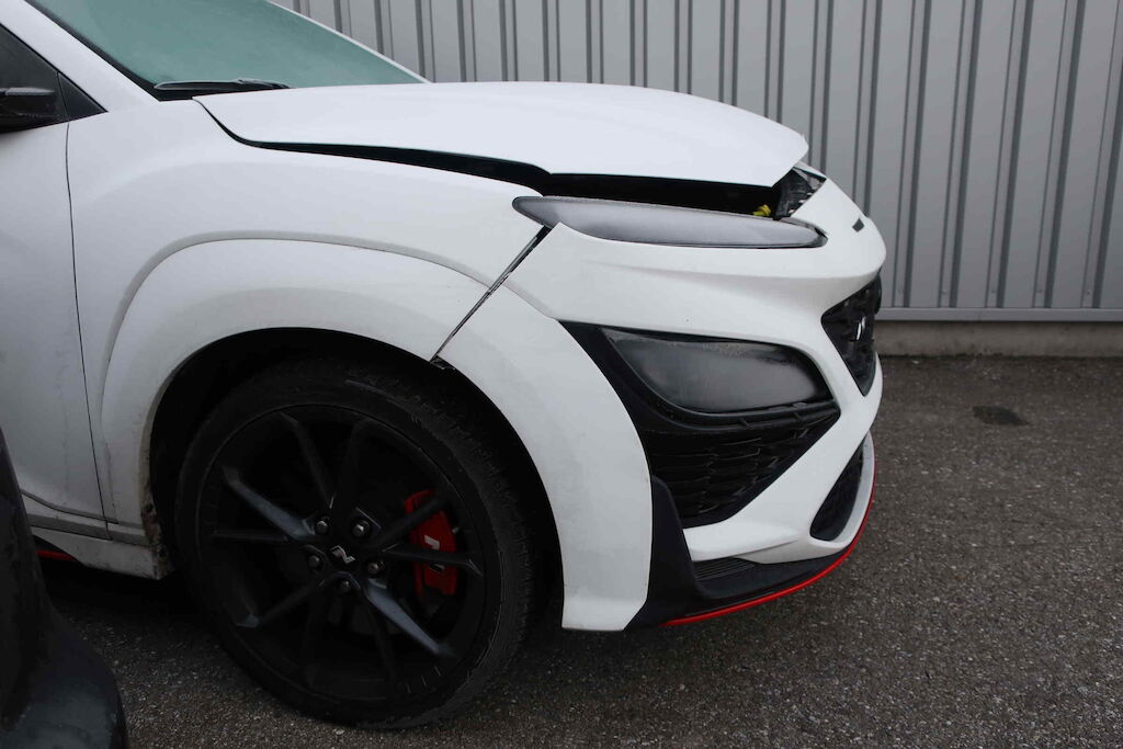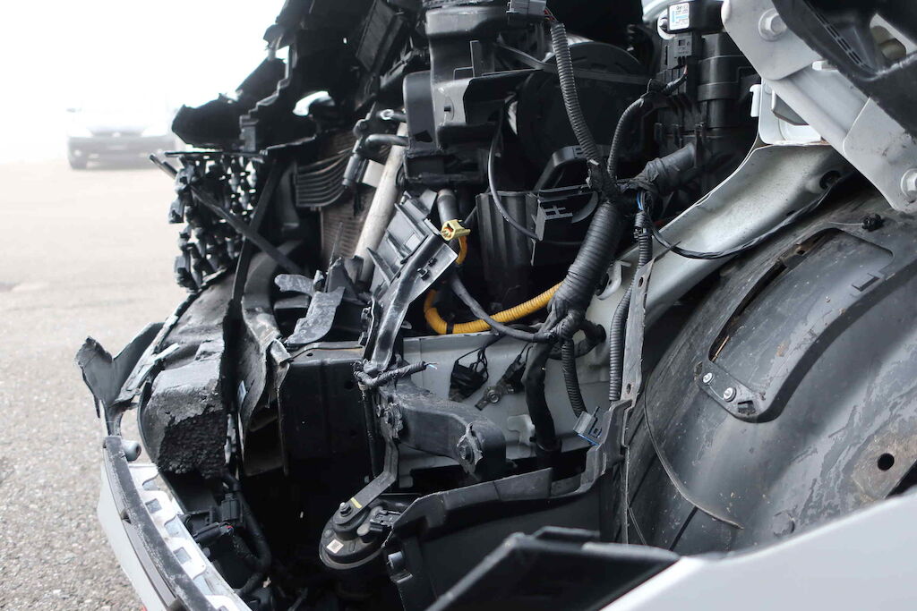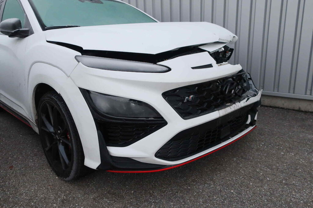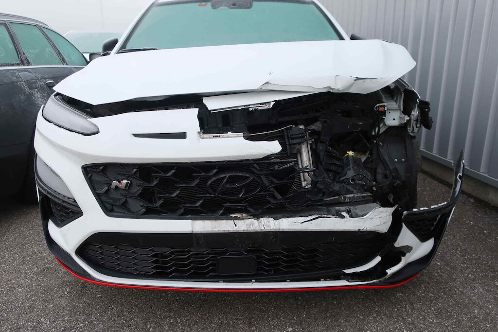 Stossfänger vo, Querträger, Kühlergrill, Motorhaube, Scheinwerfer li und re, Schlossträger, Kühler, Klimakondensator, Ladeluftkühler, Lüfter, Kotflügel vo li und re beschädigt