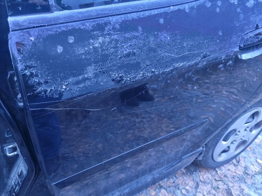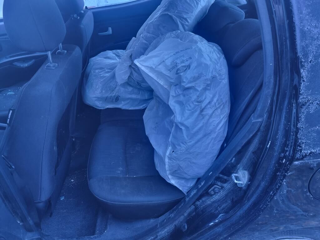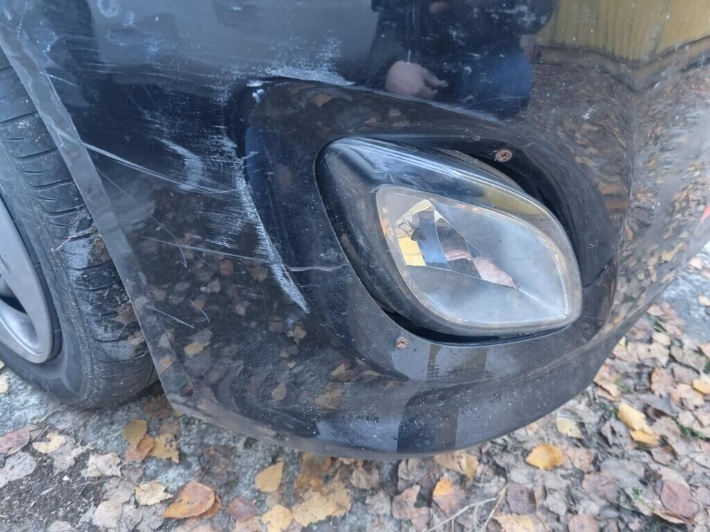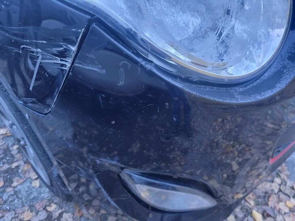 Pare-chocs avant griffé, aile avant droite, porte avant droite, pied avant droit et bas de caisse droit enfoncés, panneau de porte avant droit et rétroviseur droit cassé, risque sur suspension avant droite.
