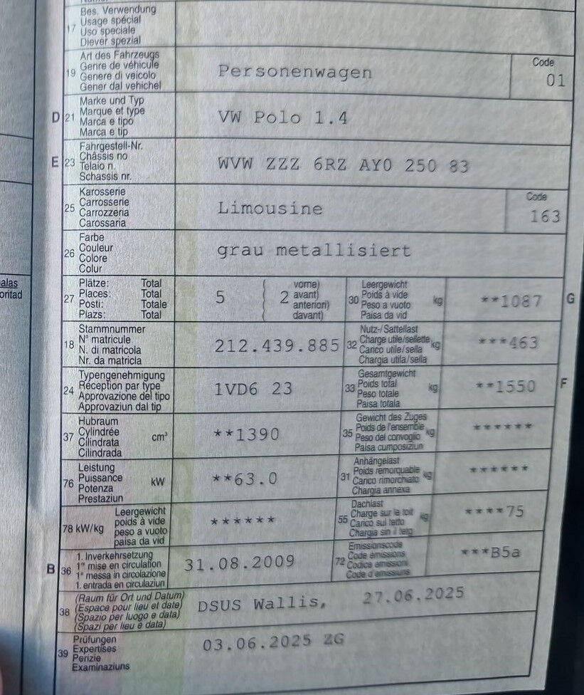 Dach, Dachrahmen, Dachhimmel, Motorhaube, Türen, beide Spiegel Risiko Motor sowie diversen Anbauteilen.