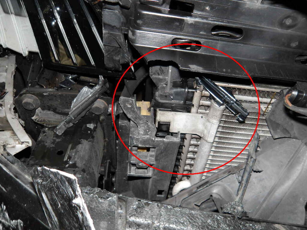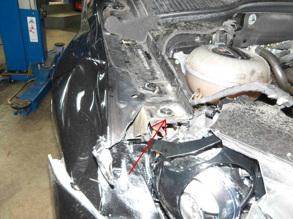Beide Kotflügel-,Türe VR-,Motorhaube-,beide Scheinwerfer-,Stossstange-,Kühlerpaket-,Querbalken-,Kühlergrill-,oberer Längsträger rechts-,Radhaus rechts- beschädigt