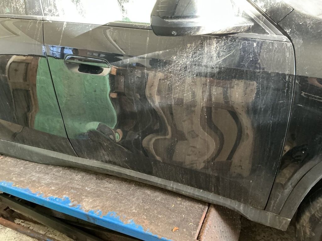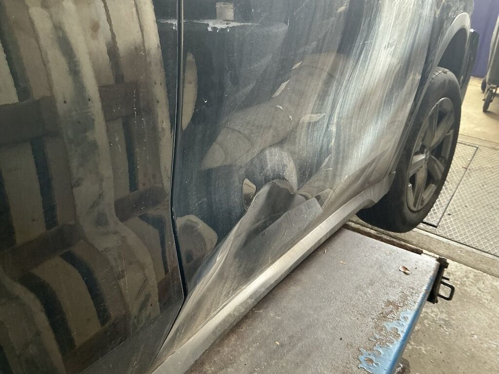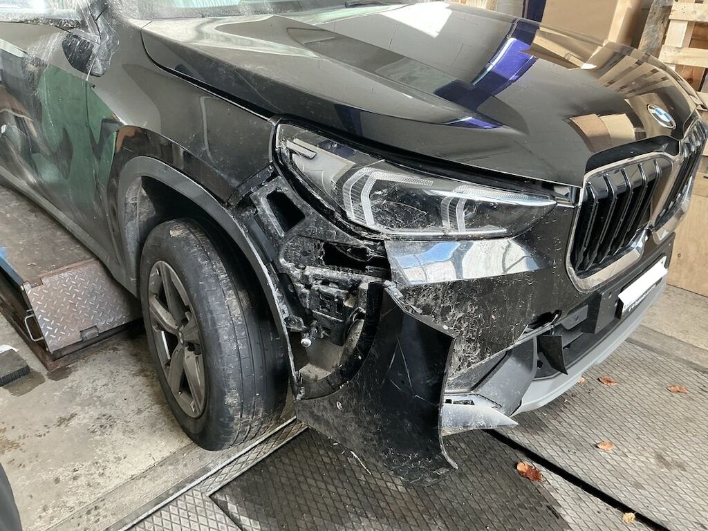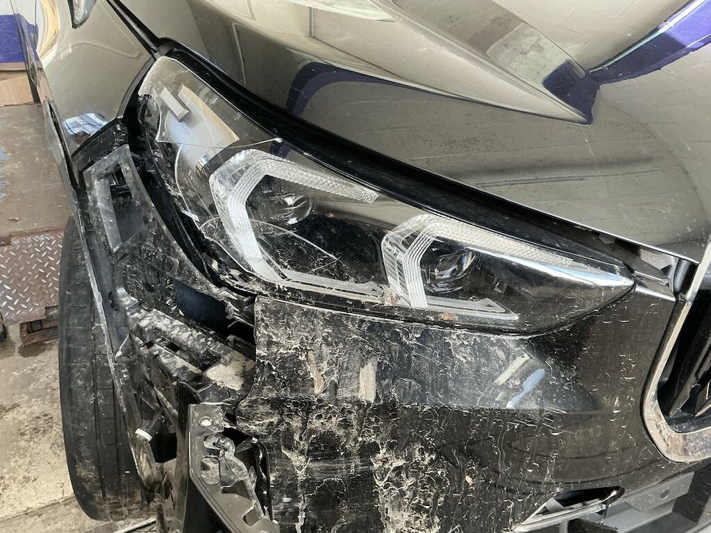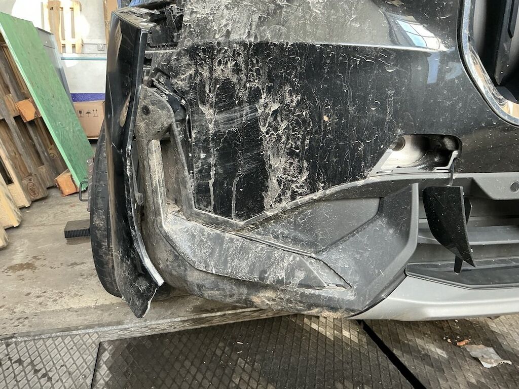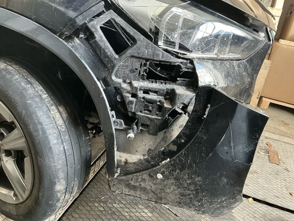 Jantes, train roulant, direction, transmission, pare-chocs, supports, grilles, phare, aile, porte, pied milieu endommagés.