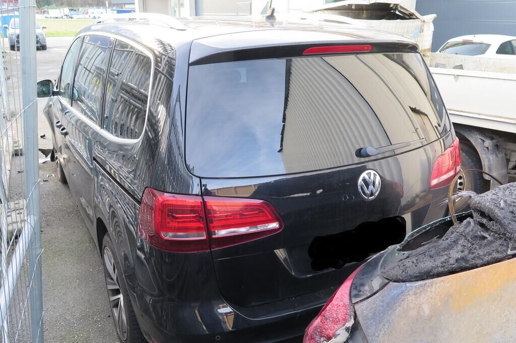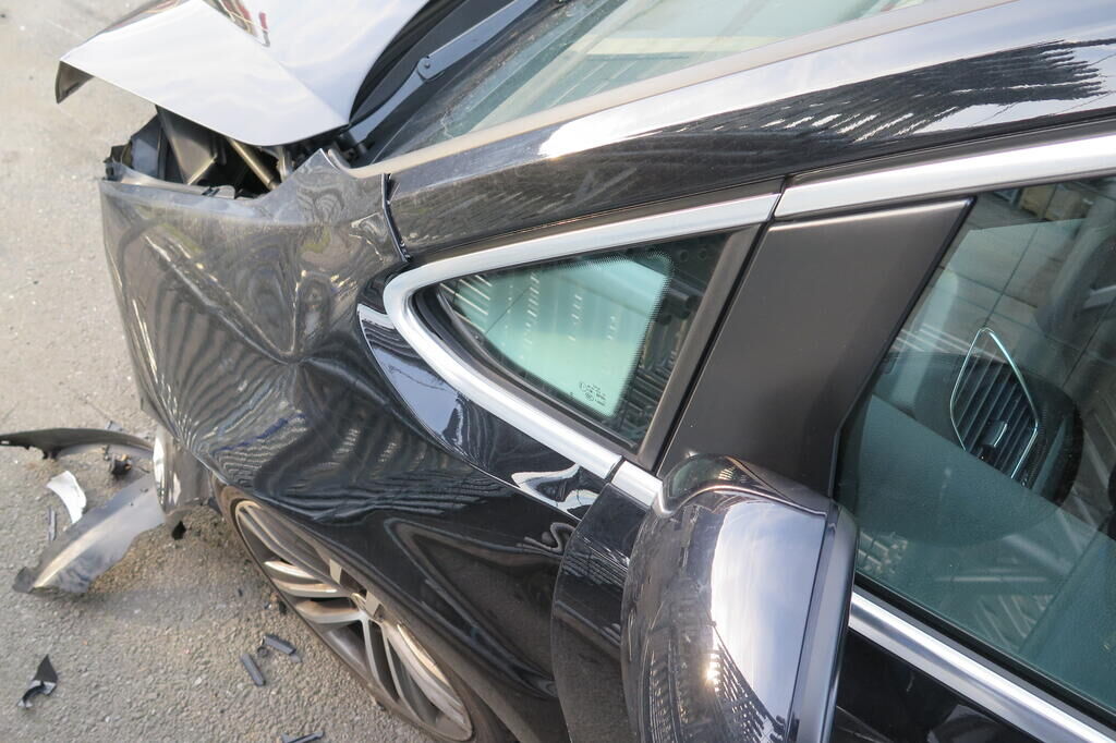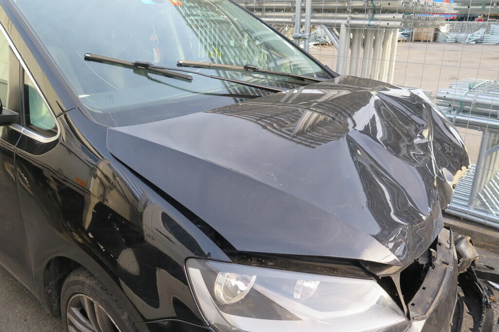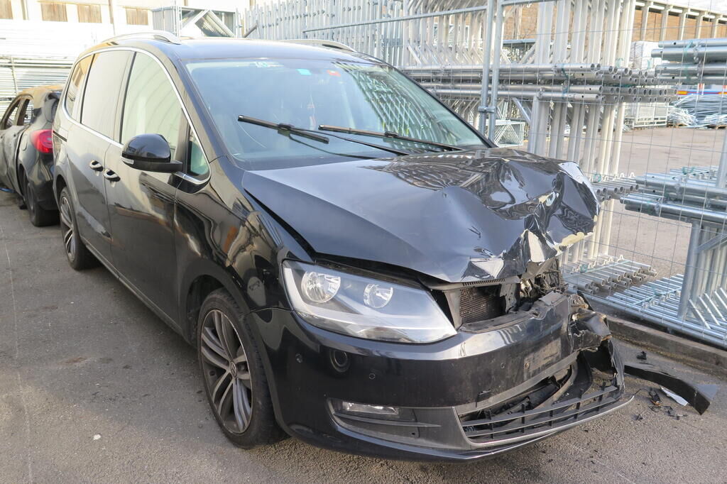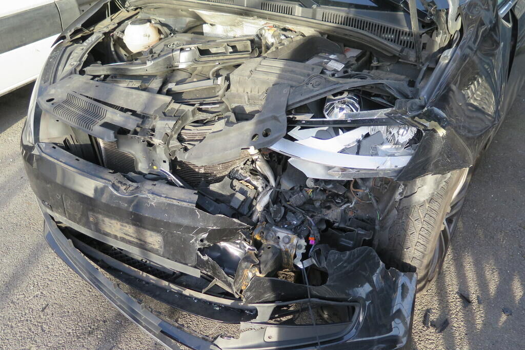 Bloc avant fortement enfoncé, armatures intérieures refoulées, suspension avant gauche refoulée, pare-brise cassé, airbags déployés, divers garnissages et accessoires cassés.