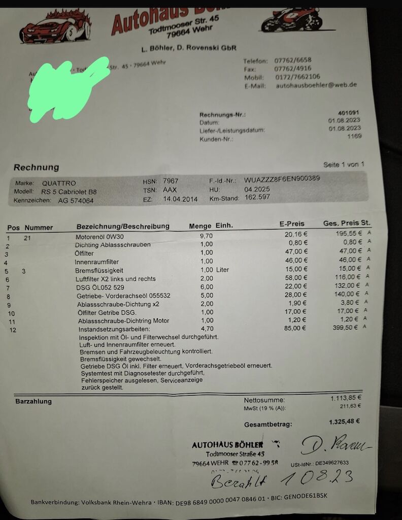 Keine technische Prüfung (Werkstatttest) vorgenommen