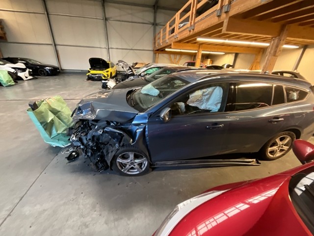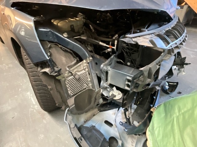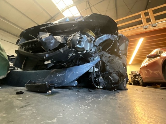 Front Front eingedrückt. Frontblech/Maskenblech eingedrückt. Längsträger vorne links gestaucht. Fahrzeugvorbau verschoben. Motor Achse Elektrik Innenraum Glas Sonstige Schäden |