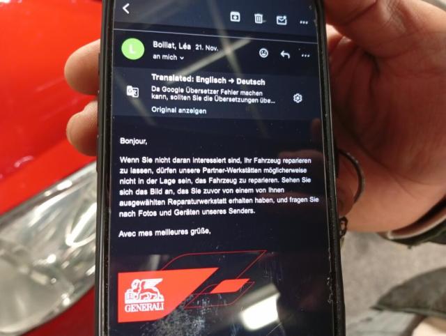 Beschädigungen Links Linke Seite beschädigt. Front Weitere Beschädigungen |