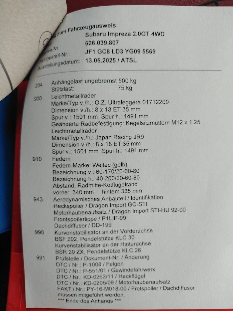 STI prodrive Ausstattung, Maxspeed Abgasanlage, JR racing wheels, weitec Fahrwerk