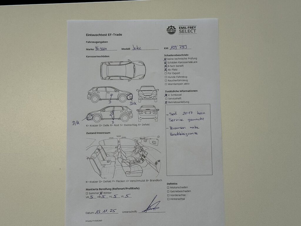 Keine technische Prüfung (Werkstatttest) vorgenommen
