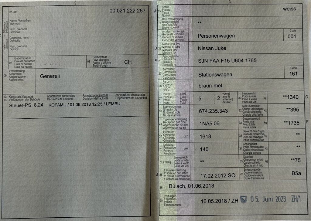 | Costi riparazione | 0.00 CHF | |