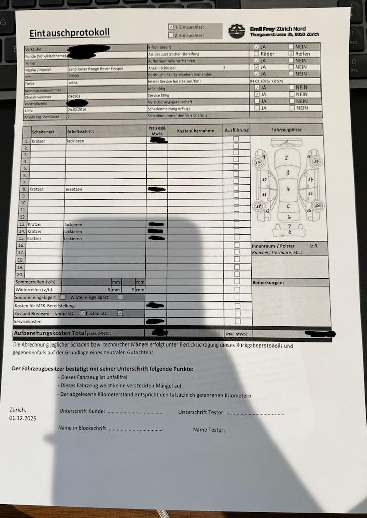 Keine technische Prüfung (Werkstatttest) vorgenommen