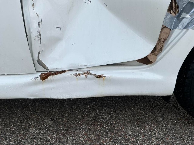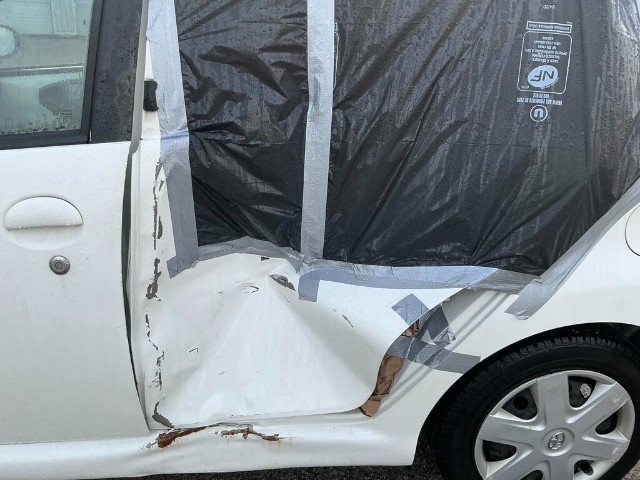 Tür, Fenster, Fensterheber, Unterbau, Mittelfuss und Scharniere sind beschädigt.