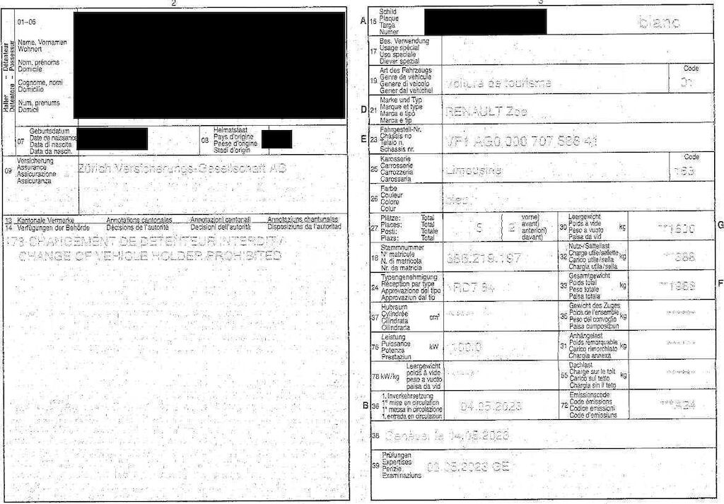 Wieder aufgefundenes Diebstahlfahrzeug. Anzahl Schlüssel: 2 / Fz-Ausweis: ja / Bordmappe+Serviceheft: Bordmappe ja, Serviceheft online via Händler (letzter Service unklar) / Km-Stand: original / VIN: original / Lenkschloss: i.O. / Zündschloss: i.O. / Reifen: Vo: 195/55 R16 91T (20%), Hi: 205/55 R16 91H (20%). Schäden: Lackschäden Stossstange vorne + hinten, Kratzer Seitenwand hinten rechts, Lackschäden Schweller links+rechst, Kratzer Kotflügel + Tür vorne links, Kratzer Heckklappe, Kratzer B-Säule rechts, alle 4 Felgen zerkratzt, Innenraum nicht sauber. Probefahrt: i.O. Ladekabel vorhanden. Die hier gemachten Angaben sind unverbindliche Beschreibungen. Sie stellen keine zugesicherten Eigenschaften dar. Der Verkäufer haftet nicht für Irrtümer, Eingabefehler und Datenübermittlungsfehler.