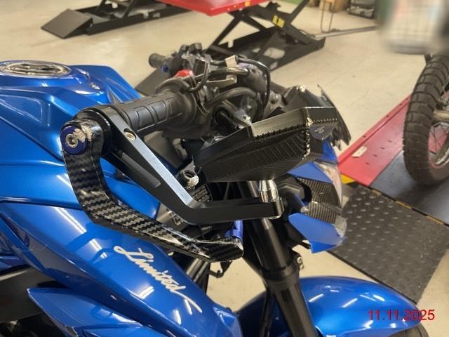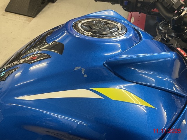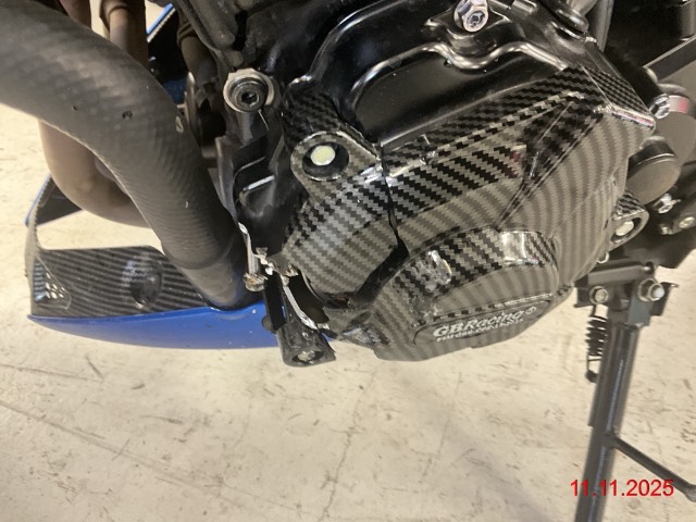 Schadensbeschreibung Seite links : Motordeckel gerissen, Scheinwerfer zerschlagen, unterer Teil Gabel zerkratzt / Seite rechts : Verschalung vorne zerkratzt, Motordeckel zerkratzt, Spiegel, Bremshebel, Lenkergewicht, Auspuff zerkratzt, Tank zerkratzt, Fussbremshebel verformt, Fussraster zerkratzt / Risiko: Motor!! / Vorbestandene Schäden: Gebrauchsspuren