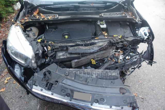 Front Kotflügel vorne links eingedrückt. Kotflügel vorne rechts und links eingedrückt. Motorhaube eingedrückt. Frontblech/Maskenblech eingedrückt. Längsträger vorne links gestaucht. Motor Achse Innenraum Sonstige Schäden |