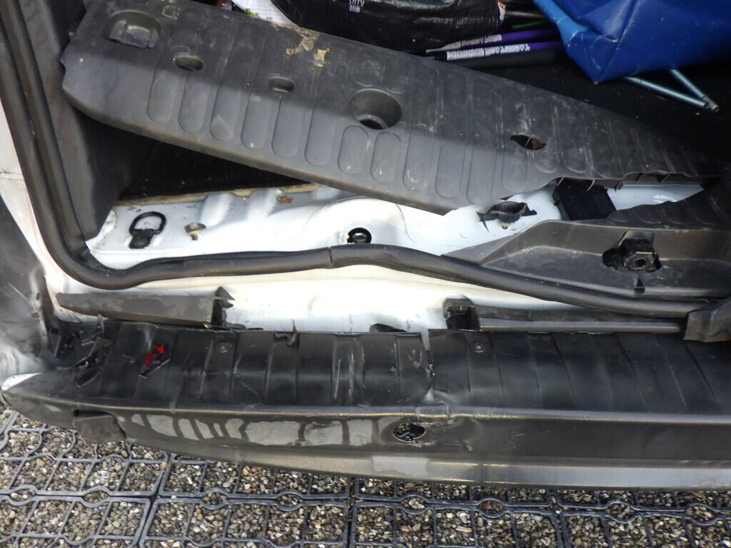 Choc arrière: déformation du pare choc, renfort, aile arrière gauche, montant arrière gauche, porte battante gauche, jupe, plancher, caméra, capteurs de parc, feu arrière gauche…