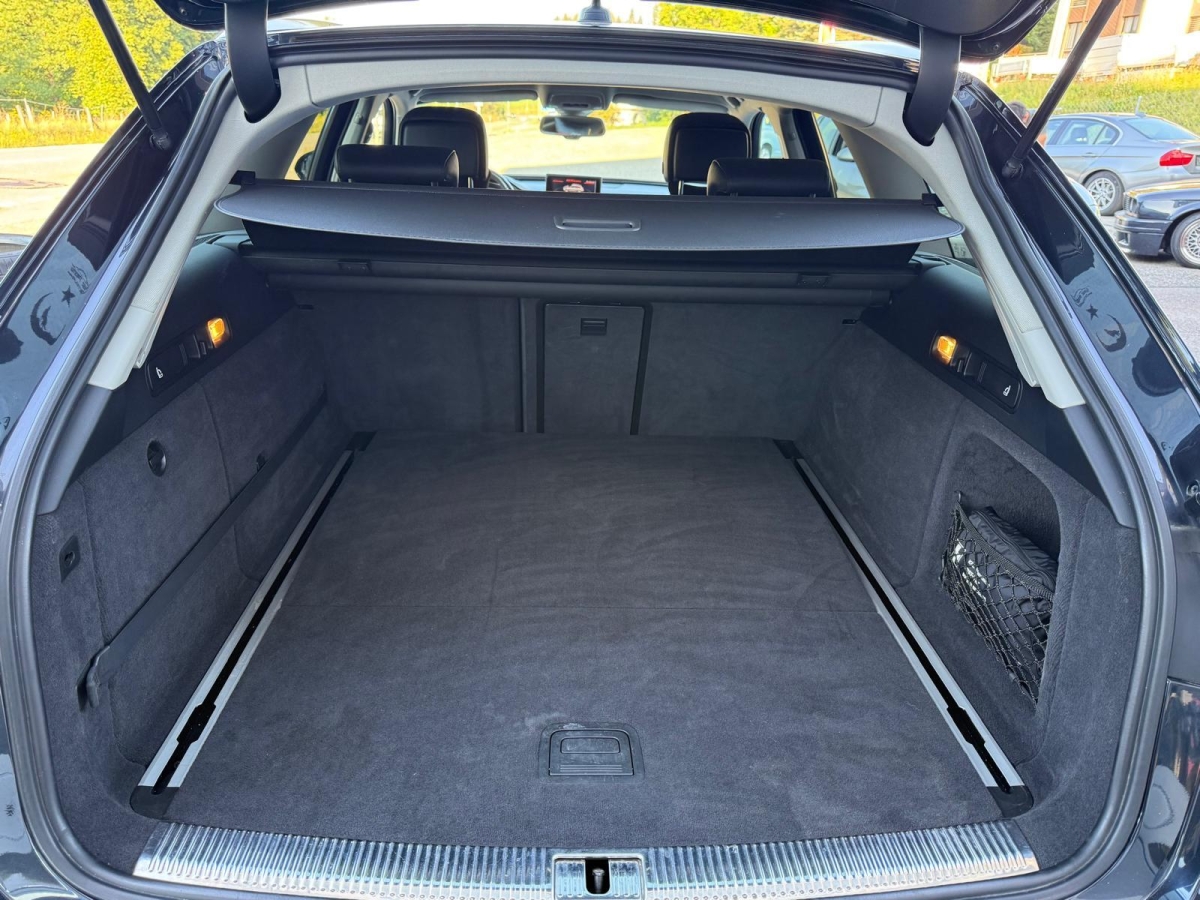Gurtstraffer mit Gurtkraftbegrenzer, ABS, EBD elektronische Bremskraftverteilung, Räder: Reifendruck-Kontrollanzeige, Elektronisches Stabilitäts-Programm (ESP), Innenlicht-Abschaltverzögerung, Seitenaufprall-Schutzsystem, 3 Kopfstützen hinten, Sitze: Vordersitze höhenverstellbar, Stossstangen und Aussenspiegel in Wagenfarbe, Aktive Kopfstützen, Dekoreinlagen Micrometallic platin, Servotronic, Aussentemperaturanzeige, Cupholder vorne, Beleuchtetes und abschliessbares Handschuhfach, Airbag: Window-Kopfairbags, Digital Uhr, Nebelscheinwerfer, Garantie: 2 Jahre ohne Kilometerbegrenzung (ab 1. Inv.), Klimaautomatik Komfort, Getönte Scheiben, Assist: Bremsassistent (BAS), Sitze: Vordersitze heizbar, Veloursfussmatten vorne und hinten, Auspuffanlage mit 2 Endrohren (links und rechts), Licht: Halogenscheinwerfer, Warnblinkautomatik bei Vollbremsung, Anfahrassistent, Elektronische Differentialsperre (EDS), Lackierung: Uni-Lackierung, Allradantrieb permanent, Aussenspiegel rechts und links beheizt und elektrisch verstellbar, asphärisch gewölbtes Spiegelglas, Durchladesystem inkl.Skisack, Tageskilometerzähler, Lichtsensor, Audi drive select, Antriebsschlupfregelung (ASR), Wassertemperaturanzeige, Mittelarmlehne hinten, Elektrische Fensterheber vorne + hinten, Sicherheitslenksäule, Bremsbelag-Verschleissanzeige, Wartungsintervall-Anzeige, LED Blinker im Aussenspiegel, Gepäcksicherungsnetz(e) im Laderaum, Instrumentenbeleuchtung, regelbar, Klima: Pollenfilter (Staubfilter), Kreuzstützen für Vordersitze elektrisch verstellbar, Schienensystem im Laderaum mit variablen Verzurrösen, Lichtwarnsummer, Wagenheber, Stop/Start-Technologie, Regensensor für Scheibenwischer vorne, Zweiklanghorn, Sitze: Normalsitze, Scheinwerfer-Waschanlage, Drehzahlmesser, Audi pre sense basic, Seitenairbag für Fahrer und Beifahrer, Licht: Drittes Bremslicht, 12 Volt-Steckdose im Laderaum, Lenkrad: Lenkrad längs- und höhenverstellbar, Kraftstofftank 75 Liter, Licht: Tagfahrlicht, MMI basic, Start-/Stop-Knopf, 3-Punkt-Sicherheitsgurte auf allen Plätzen, Mittelarmlehne vorn in Kunstleder schwarz mit Kontrastnaht in Rot, 12-Volt-Steckdose vorne, Media: MMI Radio plus, Airbag: Airbag Fahrer und Beifahrer, Glanzpaket: Fensterschachtleisten in eloxiertem Alu, Einstiegsleisten in Alu, Türgriffe aussen in Wagenfarbe, Schalthebelknauf in Leder, Sitze: Vordersitze manuell verstellbar, Sequentielles 7-Gang-Getriebe mit Automatikfunktion, Tempomat mit Geschwindigkeitsbegrenzer, Notrad, Elektronische Parkbremse, Sitzbezüge Stoff, Einstiegsschienen, Kindersicherung an den hinteren Türen, Leuchtweitenregulierung elektrisch, Höhenverstellbare Gurten vorne, Aschenbecher und Zigarettenanzünder, Brillenablage, Ausstiegsleuchten in den Türen vorn, Abblendlichtausschaltverzögerung ‘Follow me home’, Kartentaschen an den Rückenlehnen, Gurtkontrolle, Dachspoiler, Ablagen in den Türen, Alu-Räder 8Jx17 im 6-Arm-Design, Rücksitzlehne geteilt abklappbar, Laderaumabdeckung, Licht: Nebelschlussleuchte, Schublade unter Beifahrersitz, Frontscheibe Verbundglas, Schublade unter Fahrersitz, Zentralverriegelung mit Fernbedienung, Scheibenwischer vorne mit Intervall, Adaptives Bremslicht, Multifunktions-Lederlenkrad 4-Speichen, Wegfahrsperre elektronisch, Dachreling blank, Partikelfilter und Oxydationskatalysator