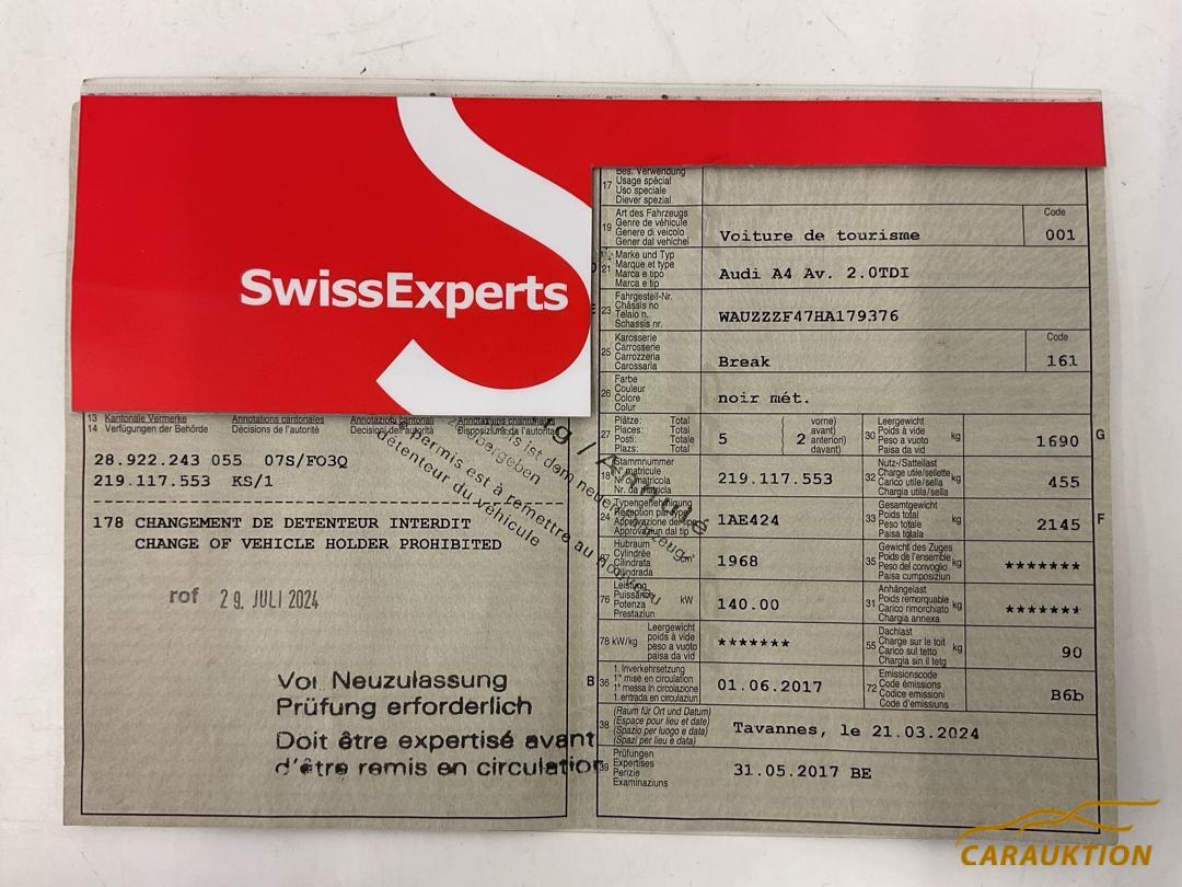 Assistenz Paket (Adaptive cruise control, Verkehrszeichenerkennung RSI (Road Sign Information System)), Infotainment Paket (Multifunktionslenkrad), Licht: Fernlicht-Assistent, Audi virtual cockpit 12,3”, Innenspiegel automatisch abblendbar, Kreuzstützen für Vordersitze elektrisch verstellbar, Diebstahlwarnanlage mit Innenraum- überwachung und Abschleppschutz, Lenkrad: Leder-Multifunktion plus Lenkrad im 3-Speichen-Design, Licht- und Regensensor, Assist: Einparkhilfe plus, AdBlue Behälter mit grösserem Volumen, Schienensystem im Laderaum mit Fixierset, Assist: Rückfahrkamera, Armlehne vorne mit Ablagefach, Metallic-Lackierung, Verkehrsschild-Erkennungssystem, Audi connect (3 Jahre), Sitze: Vordersitze heizbar, LED Scheinwerfer