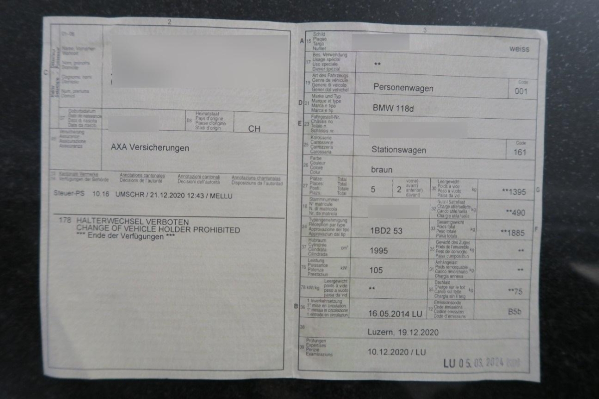 | Fahrzeugausweis | Vorhanden |