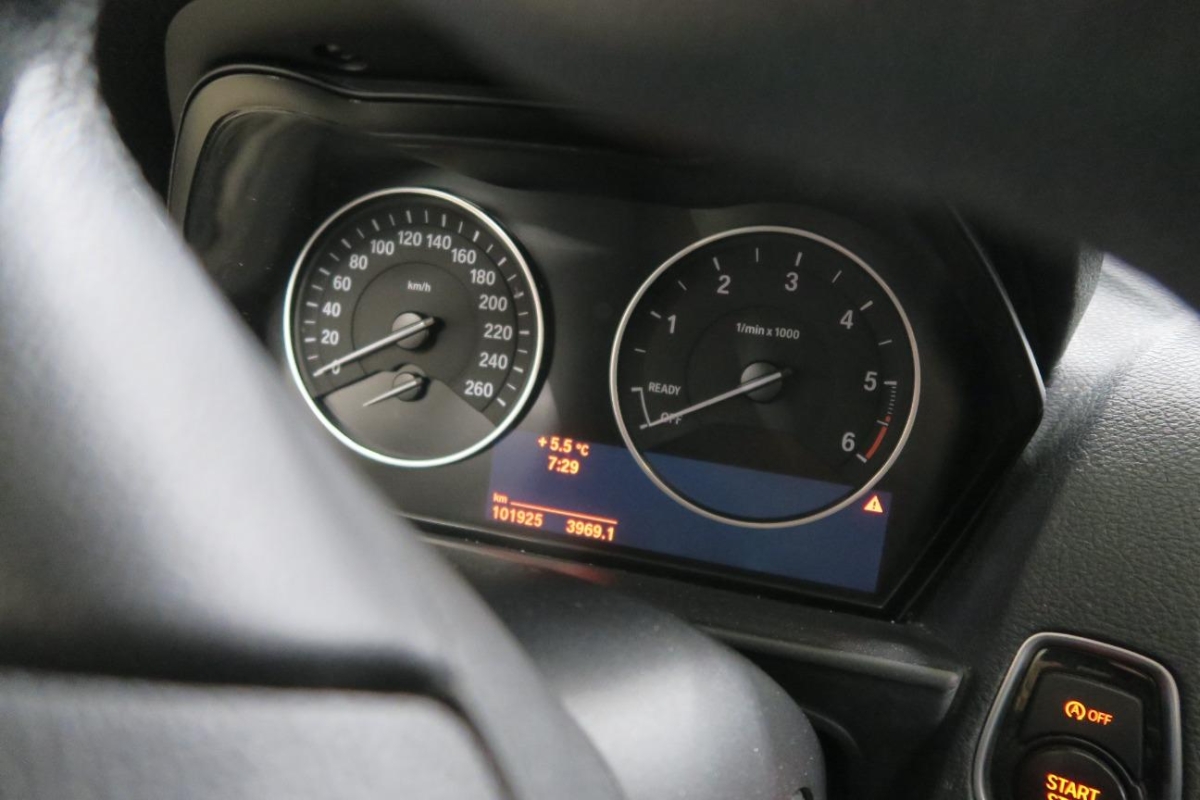 Reifendruckverlust-Warnsystem, Nichtraucherausführung, Partikelfilter und Oxydationskatalysator, Sitze: Beifahrersitz höhenverstellbar, Lenkrad: Lenkrad längs- und höhenverstellbar, Dynamische Stabilitätskontrolle (DSC), Window-Kopfairbags, Make up-Spiegel rechts, Check-Control-System, Verbandskasten, TeleService, Aux-In Anschluss, Schlüsselloser Motorstart, Klima: Klimaanlage, ISOFIX Kindersitzvorrichtung, Motor Start-/Stop-Anlage, Durchladeklappe, Lederlenkrad, Airbag: Airbag Fahrer und Beifahrer, Make up-Spiegel links, Elektronische Differentialsperre, Cupholder, Bremsassistent (BAS), Antiblockiersystem (ABS), Kopfstützen hinten, Anfahrassistent, Radio BMW Business CD, Gangempfehlung, ISOFIX-Befestigungspunkte für Kindersitz an den äusseren Rücksitzen, Veloursfussmatten vorne und hinten, 12-Volt-Steckdose vorne, Intelligenter Notruf, Zusätzliche 12V Steckdosen, Elektrische Lenkung (EPS), Leuchtweitenregulierung von innen, DAB+ (Digital Audio Broadcasting), Rücksitzlehne geteilt abklappbar, Gurtstraffer vorne, Dynamische Bremsleuchten, Stossstangen und Aussenspiegel in Wagenfarbe, Bremsbelag-Verschleissanzeige, Befestigungsösen im Laderaum, Bordcomputer, Schliessystem mit Zentralverriegelung, Auspuffblende, verchromt, Türgriffe in Wagenfarbe, Dachzierleiste in Wagenfarbe, BMW Mobility System, Assist: Crash-Sensor, Fahrersitz höhenverstellbar, Wegfahrsperre elektronisch, Blinker in Aussenspiegel, Drittes Bremslicht, Elektrische Fensterheber vorne + hinten, Innenraumbeleuchtung, Getriebe: 6-Gang-Getriebe, Kopfstützen hinten abklappbar, Wärmeschutzverglasung, Bremsenergie-Rückgewinnung, Seitenairbags, 3-Punkt-Sicherheitsgurte auf allen Plätzen, Aussenspiegel rechts und links beheizt und elektrisch verstellbar, asphärisch gewölbtes Spiegelglas, Assist: Cornering Brake Control (CBC), Automatische Stabilitäts- und Traktions- kontrolle, Licht: Nebelschlussleuchte, Akzentleisten Oxidsilber matt, Armauflage vorne, verschiebbar, Einstiegsschienen mit Logo, Interieurleisten Acrylglas schwarz, Leichtmetallfelgen im V-Speichen-Design 411, 16J, Servotronic, Sport-Lederlenkrad, Stoff-/ Leder, Metro Ausstattung