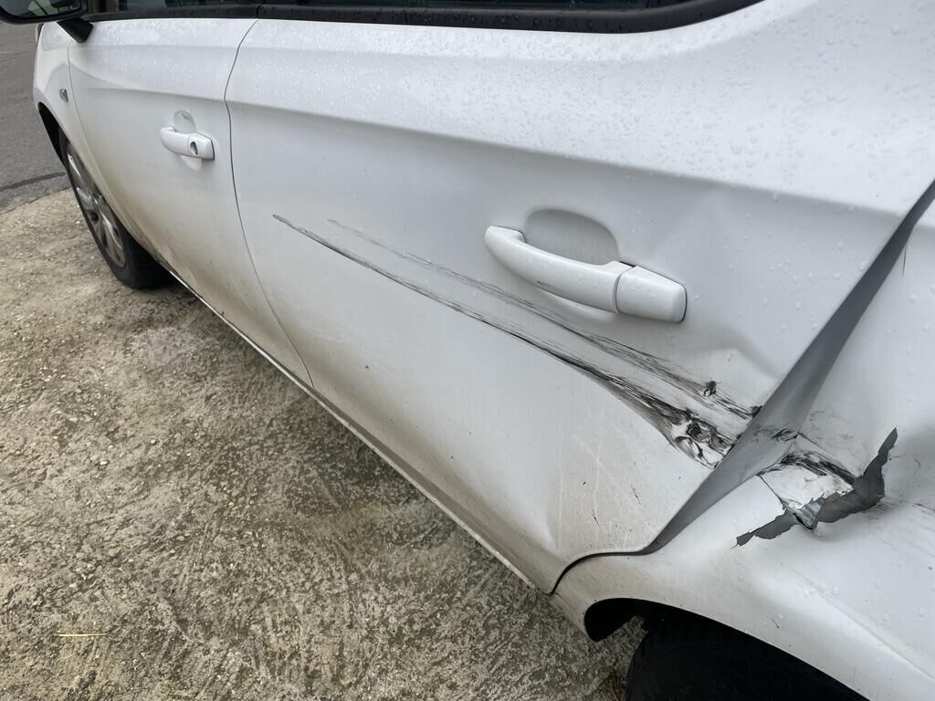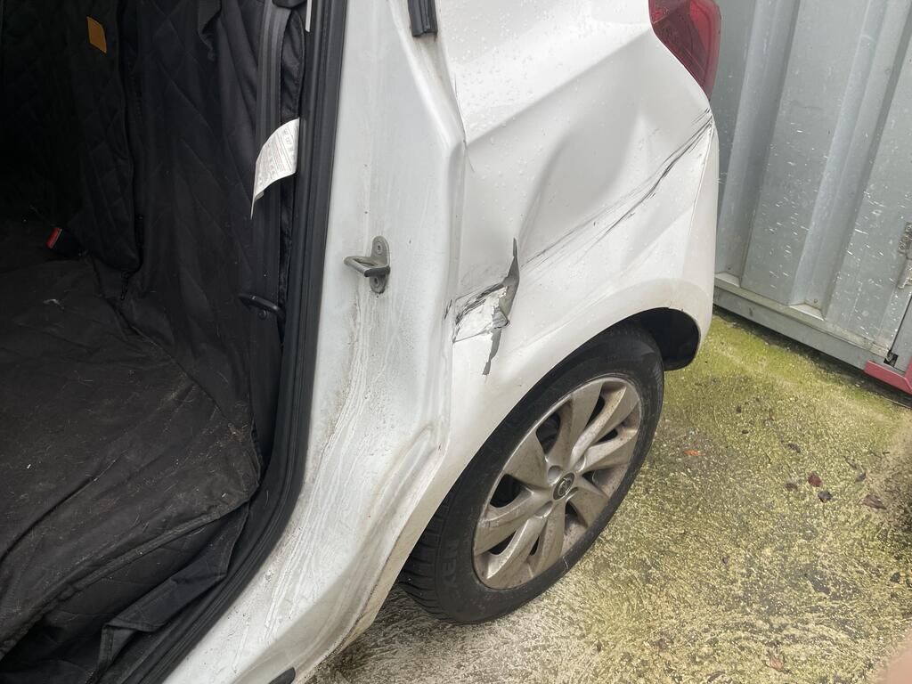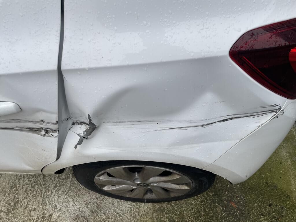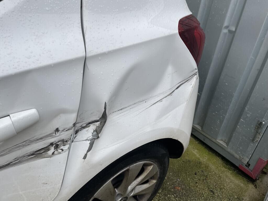 Porte arrière, aile arrière et pare-chocs arrière endommagés.