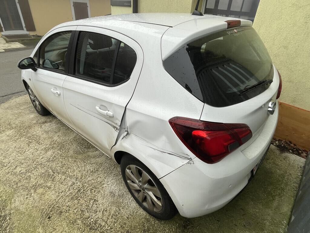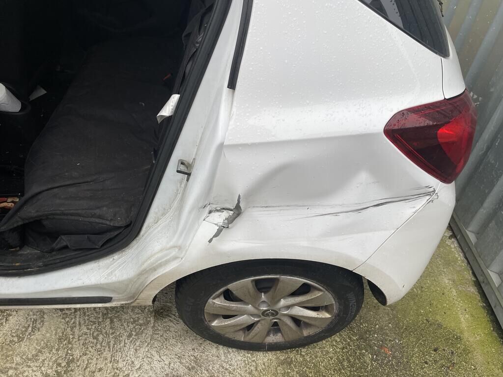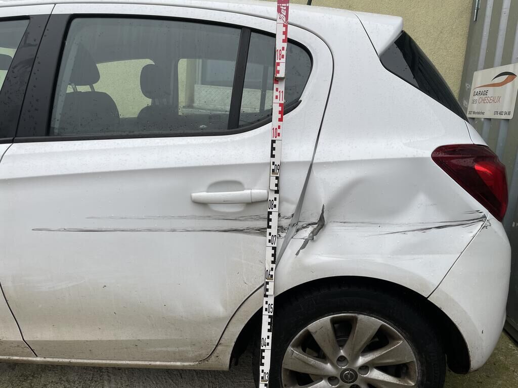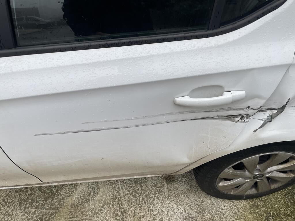 Porte arrière, aile arrière et pare-chocs arrière endommagés.