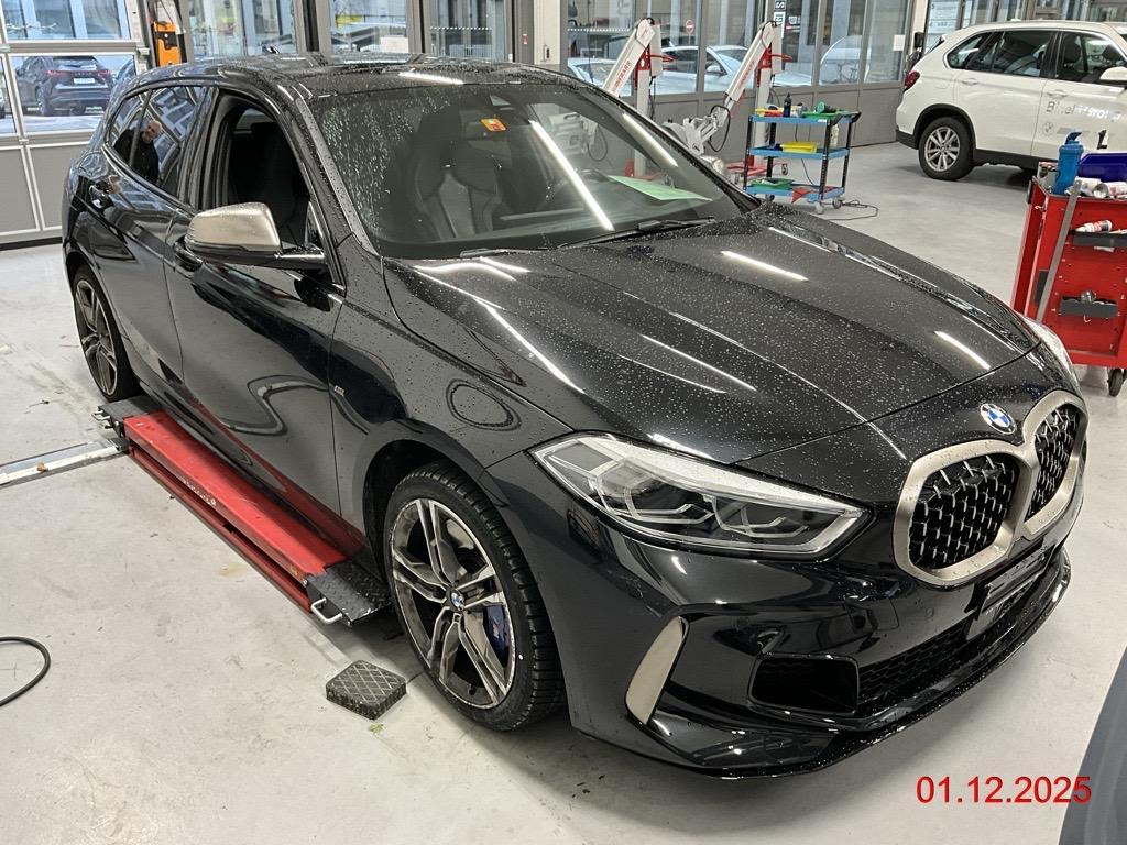 Servotronic, Wärme-/Sonnenschutzverglasung, Warndreieck mit Erste-Hilfe-Set, Elektronische Wegfahrsperre, Ottopartikelfilter, Allradantrieb permanent, Fahrerlebnisschalter, Media: Freisprecheinrichtung mit USB Schnittstelle, Check-Control, Abschliessbare Radschrauben, Airbag: Airbag Fahrer und Beifahrer, Airbag: Seitenairbag für Fahrer und Beifahrer, Dynamische Stabilitätskontrolle (DSC), Active Guard Plus – Spurverlassenswarnung mit aktiver Rückführung (ab ca. 70 km/h) – Auffahr- und Personenwarnung mit City-Bremsfunktion – Speed Limit Info mit manuellem Speed Limit Assist, Getriebe: 8-Stufen-Automat Steptronic Sport, Assist: Crash-Sensor, Antiblockiersystem (ABS), Fahrwerk: M Sportfahrwerk – Straffere Feder-/Dämpferauslegung – Noch direktere Fahrwerksauslegung welche eine sportliche Fahrweise begünstigt, Endrohrblenden, sichtbar, Räder: 18″ M Leichtmetallräder Doppelspeiche 556 M Bicolor Ceriumgrau matt, glanzgedreht – 8 J×18/Bereifung 225/45 R 18, Assist: Speed Limiter, Sitze: Sportsitze für Fahrer und Beifahrer, Intelligenter Notruf, Armauflage vorn, klappbar mit integriertem Ablagefach, Airbag: Kopfairbags für alle 4 äusseren Sitzplätze, Fussmatten in Velours, Regensensor für Scheibenwischer vorne, M Heckspoiler, Persönliche BMW Service Card, M Sportbremsen – 18″ Festsattelbremse vorne, blau lackiert mit M-Schriftzug – 16″ oder 17″ Faustsattelbremse hinten, blau lackiert, Polster: Stoff Trigon/Sensatec, Lenkrad: Multifunktionslenkrad, Assist: ATTENTION ASSIST (Aufmerksamkeits-assistent), Parkbremse, elektromechanisch, Sitze: Beifahrersitz-Höhenverstellung, BMW Live Cockpit, Licht: Begrüssungslicht, Personal Profile, BMW Individual Dachhimmel Anthrazit, DAB-Tuner, Dachzierleiste in Wagenfarbe, Räder: Reifenreparatur-Set (Tire Fit), M Sportlenkung, Performance Control, Klima: 2-Zonen Klimaautomatik inkl. Mikro- und Aktivkohlefilter – 2-Zonen-Klimaautomatik mit erweiterten Umfängen – Temperaturregelung für Fahrer und Beifahrer getrennt – SYNC-Funktion: Fahrereinstellungen gelten für den gesamten Fahrzeuginnenraum – Automatikprogramm mit 5 Intensitätsstufen für Fahrer und Beifahrer getrennt – Beschlag- und Solarsensor, Mikro- und Aktivkohlefilter – Standlüftung – Fond-Belüftungsauslässe in Mittelkonsole, BMW Individual Hochglanz Shadow Line, Lackierung: Uni-Lackierung, BMW Niere in Mesh-Design, Auto Start Stop Funktion, Lenkrad: M Lederlenkrad, Steckdose 12V, Licht: LED Scheinwerfer, Reifendruck-Kontrollanzeige, Assist: Geschwindigkeitsregelung mit Bremsfunktion, Einstiegsleisten vorn mit M135i-Schriftzug, Condition Based Service, Aussenspiegel rechts und links beheizt und elektrisch verstellbar, asphärisch gewölbtes Spiegelglas, Paket: M Aerodynamicpaket – Stossfängerverkleidung vorn und hinten, Seitenschwellerverkl. mit spezifischem M Design – Nierenrahmen in Ceriumgrau – Nierengitter in Mesh-Optik in Ceriumgrau – Lufteinlässse vorn links/rechts mit Akzentspange in Ceriumgrau – M-Schriftzug in Ceriumgrau – Einsatzteile Seitenschweller und Heckdiffusor in spezifis, Bremsassistent (BAS), Seitenaufprallschutz, Assist: Park Distance Control vorne und hinten, Paket: Connected Package, Gepäckraumleuchte, Decor: Interieurleisten Illuminated Boston beleuchtet, Grösserer Kraftstofftank ca. 8 Liter, Verzurrösen im Gepäckraum, Airbag: Airbag Beifahrer deaktivierbar, Getränkehalter, Kindersitzbefestigung ISOFIX