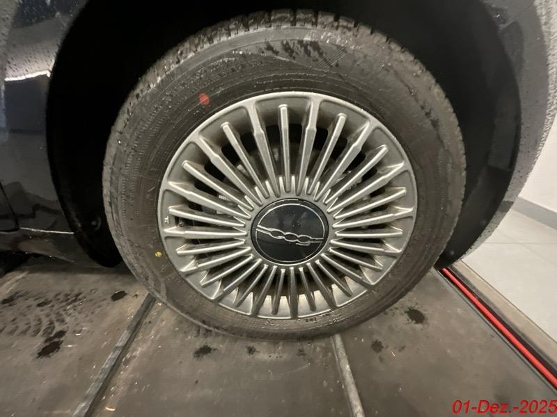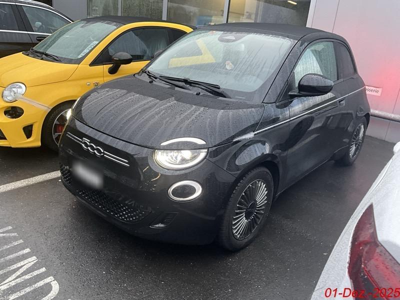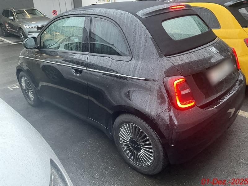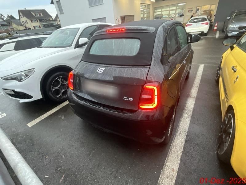 12V-Steckdose vorne und im Kofferraum, ABS, EBD elektronische Bremskraftverteilung, Airbag: Airbag Beifahrer deaktivierbar, Airbag: Airbag Fahrer und Beifahrer inkl. Seitenairbags, Airbag: Kopfairbags vorne, Armaturenbretteinlage, Assist: 11 Parksensoren 360° ‘Drone View’, Assist: Autonome Notbremsung mit Fussgänger- und Radfahrererkennung, Assist: Cruise Control (Tempomat), Assist: E-Call Notruf-Funktion mit SOS-Knopf und Geolokalisierung, Assist: Intelligenter Geschwindigkeitsassistent, Assist: Müdigkeitsassistent, Assist: Parksensoren hinten, Assist: Spurhalteassistent, Assist: Spurzentrierung (Lane Centering), Assist: Verkehrszeichenerkennung, Aussenspiegelkappen in Wagenfarbe, Automatische Türverriegelung während der Fahrt, Batterie 42 Kwh, Beide Seitenfenster one touch up/down, Blinker mit Antipp-Funktion, Bordcomputer, E-Breaking, E-Coasting, Smart Charging, One Pedal Driving, EV Fast Charging 85 kW, EV-Fahrmodi (inkl. Sherpa-Modus für Efficiency-Boost), Elektrische Feststellbremse mit Auto-Hold Funktion, Elektronisches Stabilitäts-Programm (ESP), Fenster- und Verdeckbedienung mit Fernbedienung (öffnen/schliessen), Garantie: Fiat 3 Jahre Garantie, unlimitierte Kilometeranzahl – inkl. Ersatzwagen, Pannenhilfe und Assisten, Getriebe: Stufenloser Automat, Keyless Go + Passive Entry, Klima: Klimatisierungsautomatik, Lackierung: Uni-Lackierung, Lenkrad: Soft Touch Lenkrad in Eco-Leder, Licht: Drittes Bremslicht, Licht: Halogen Scheinwerfer mit Scheinwerferreinigungsanlage, Licht: LED Rücklichter, Licht: Lichtautomatik (automatisches Einschalten des Abblendlichts bei Erkennung von Dunkelheit), Licht: Nebelschlussleuchte, Licht: Tagfahrlicht mit 500-LED-Signatur, Media: 10.25” Infotainment-System mit Navigation – 7” digitaler Cluster, Media: 4 Lautsprecher (2 Hochtonlautsprecher + 2 Lautsprecher vorne), Media: 7", Media: CarPlay / Android Auto – Smartphone Mirroring, Media: Digitale Audioübertragung mit DAB-Radio, Media: U-Connect 5 mit 10,25", Media: USB-Schnittstelle vorne, Mittelkonsole vorne, offen, Mode 2 Ladekabel, Mode 3 Ladekabel, Pedalerie mit Sollbruchstelle zum Schutz vor Beinverletzungen bei Unfällen, Polster: Stoffsitze, Regensensor (automatische Scheibenwischerregulierung), Räder: 16", Räder: Reifendruck-Kontrollsystem (TPMS), Räder: Reifenreparaturkit mit Reifenfüllmittel und Kompressor (Kit Fix&, Seitenspiegel elektrisch verstellbar, Servolenkung, Sicherheitsgurte vorne mit Gurtstraffern, Gurtkraftbegrenzung, Gurtschloss-Sensor und Gurtwarner, Sitze: 1. Sitzreihe manuell 4-fach verstellbar mit 2-fach verstellbaren Kopfstützen, Sitze: Isofix-Befestigung für Kindersitze auf den Sitzplätzen im Fond, Sitze: Rücksitze geteilt abklappbar, Sitzrückentasche im Beifahrersitz, Stoffverdeck mit Fiat Monogramm, Tasche Ladekabel, Wegfahrsperre elektronisch