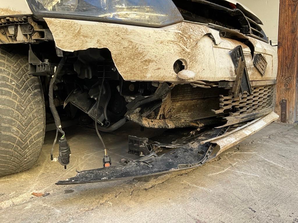 Schadensbeschreibung Avant droit : Pare-chocs, phare, radiateurs etc…. endommagés / Véhicule légèrement grêlé + traces d’utilisation