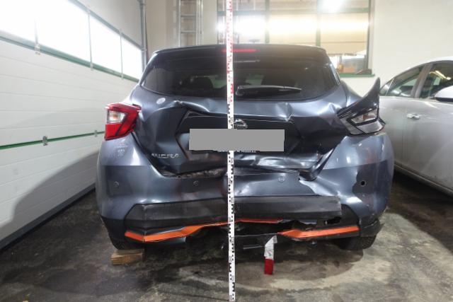 Heck Heck eingedrückt. Seitenwand hinten rechts eingedrückt/aufgestaucht. Heckblech eingedrückt. Kofferboden eingedrückt. Heckklappe eingedrückt. Längsträger hinten rechts und links gestaucht / abgeknickt. Abgasanlage deformiert. Achse Innenraum Sonstige Schäden |
