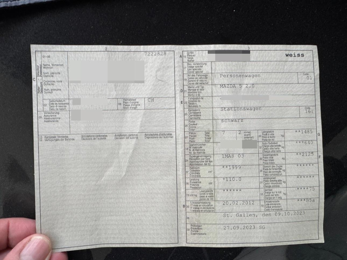 Licht: Nebelschlussleuchte, Dachspoiler, Assist: Dynamische Stabilitätskontrolle (DSC), Lenkrad: Lenkrad längs- und höhenverstellbar, Airbag: Airbag Fahrer und Beifahrer, Getriebe: 6-Gang-Getriebe, Radio CD-Player, MP3, Räder: 4 Leichtmetallfelgen 17J mit Pneu, Kreuzstütze für Fahrersitz verstellbar, Dunkel getönte Scheiben, Lenkrad und Schalthebelgriff in Leder, 3. Sitzreihe, Elektrische Fensterheber vorne + hinten, Cupholder hinten, Bordcomputer, Licht: Licht- und Regensensor, Klapptische an den Rückenlehnen der Vordersitze, Radiovorbereitung, Antenne, Entstörung und 6 LS, Sitze: ISOFIX Kindersitzvorrichtung, Media: AUX-Anschluss, Assist: Bremsassistent (BAS), Gurtstraffer vorne, Airbag: Seitenairbag für Fahrer und Beifahrer, Aussenspiegel rechts und links beheizbar und elektrisch verstellbar, Sitze: Fahrersitz höhenverstellbar, Sitze: Kopfstützen hinten, Xenon-Lichtanlage, Reifendruck-Kontrollanzeige, Katalysator geregelt, Licht: Drittes Bremslicht, Tempomat, Zentralverriegelung mit Fernbedienung, Start/Stop-Funktion, ABS und TCS, Airbag: Window-Kopfairbags, Sitze: Kopfstützen vorne höhenverstellbar, Klima: Klimatisierungsautomatik, Lenkrad: Multifunktionslenkrad, Scheibenwischer vorne mit Intervall, Media: Bluetooth-Schnittstelle, Warnblinkautomatik bei Vollbremsung, 3-Punkt-Sicherheitsgurte auf allen Plätzen, Media: Audiosystem, Sitze: Vordersitze heizbar, Mittelarmlehne vorne, Park Distance Control hinten, Nebelscheinwerfer, Laderaumabdeckung, CD-Wechsler 6-fach