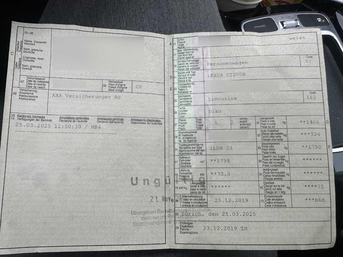 Lackierung: Uni-Lackierung, Eco-Modus, Aussenspiegel schwarz, Airbag: Seitenairbag für Fahrer und Beifahrer, Fahrprofilauswahl, Soundsystem, Lenkrad und Schalthebelgriff in Leder, Nebelscheinwerfer, Licht: LED Heckleuchten, Elektronisch geregelte Bremsen ECB, Lexus Safety System+, Licht: Nebelschlussleuchte, ABS, EBD elektronische Bremskraftverteilung, Media: 10 Lautsprecher, USB+AUX-Anschluss, Polster: Stoff-Ausstattung, ISOFIX Kindersitzvorrichtung, Media-Display, Assist: Berganfahrhilfe (Hill Assist Control -HAC), TPMS Reifendrucküberwachungssystem, Bremsenergie-Rückgewinnung, 4 Leichtmetallfelgen 17J mit Pneu, Stabilitäts- und Traktionskontrolle (VSC und TRC), 12-Volt-Steckdose vorne, Bremsassistent (BAS), Gurtstraffer vorne und hinten, Pollenfilter (Staubfilter), Heckscheibenheizung, Park Distance Control vorne und hinten, Lenkrad: Lenkrad längs- und höhenverstellbar, Kühlergrilleinfassungen, Dachspoiler, Airbag: Knie-Airbag für Fahrer und Beifahrer, Regensensor, Sitze: Vordersitze heizbar, LED-Scheinwerfer mit Scheinwefer- reinigungsanlage und automatischer Ein-/Ausschaltfunktion, UV-absorbierende Verglasung, Getriebe: Stufenloser Automat, Airbag: Window-Kopfairbags, Digital Uhr, Media: Lexus Premium Navigation, Media: Bluetooth-Schnittstelle, Schlüsselloses Schliess- und Startsystem, Sitze: Rücksitzlehne geteilt abklappbar, Aufkleber, Innenspiegel automatisch abblendbar, Start-/Stop-Knopf, Vorbereitung für Handy mit Sprachsteuerung, Katalysator geregelt, Licht: LED-Tagfahrlicht, Gurtwarneinrichtung für Fahrer- und Beifahrersitz, Rückfahrkamera, Heckscheiben-Wisch-/Waschanlage, Smart Key, Licht: Drittes Bremslicht, Airbag: Beifahrer deaktivierbar, Getönte Scheiben, Wegfahrsperre elektronisch, Räder: Reifenreparatur-Set (Tire Fit), Digitaler Radioempfang (DAB), Scheibenwischer-Enteiser, Bordcomputer, Servolenkung geschwindigkeitsabhängig, UV- und hitreisolierende, getönte Scheiben hinten, Klima: 2-Zonen-Klimaautomatik, Performance Dämpfer, Airbag: Airbag Fahrer und Beifahrer, Aussenspiegel rechts und links beheizt, elektrisch verstell- / und einklappbar, 3-Punkt-Sicherheitsgurte auf allen Plätzen, Audiofernbedienung am Lenkrad, Mittelarmlehne vorne, Touchscreen, Zentralverriegelung mit Fernbedienung und automatischer Türverriegelung, Sitze: Vordersitze, in 6 Richtungen manuell verstellbar, Verkehrsschild-Erkennungssystem, Automatisches Fernlicht, Elektrische Fensterheber vorne + hinten, Pre-Crash-Sicherheitsystem mit adaptivem Tempomat, Smart Entry, Spurhalteassistent