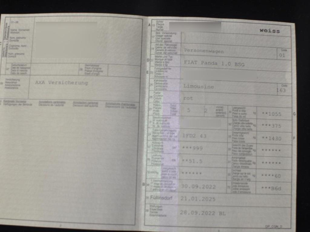 | Fahrzeugausweis | Vorhanden |