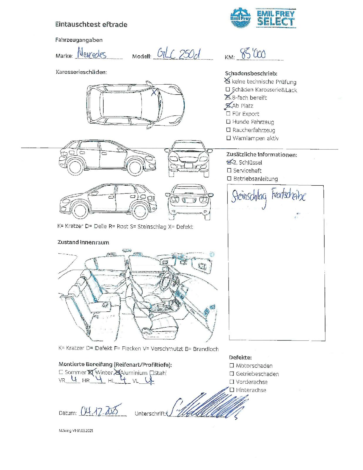 | Steinschlag Frontscheibe. Fahrzeug wird nur gegen Barzahlung verkauft und muss durch den Käufer selbst oder dessen Personal abgeholt werden. Abholung muss innert 3-Tagen nach Kauf und nach vorgängiger telefonischer Anmeldung erfolgen. Schadenbeschrieb siehe Formular EF-Trade sowie Fotos. |