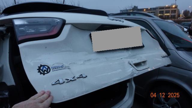 Heck Heck eingedrückt. Heckblech eingedrückt. Kofferboden eingedrückt. Heckklappe eingedrückt. Abgasanlage deformiert. |