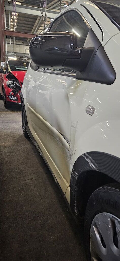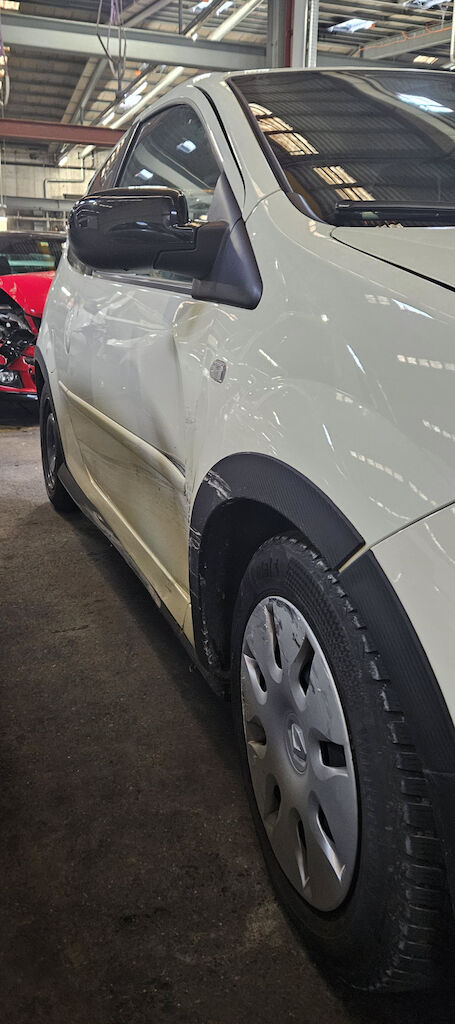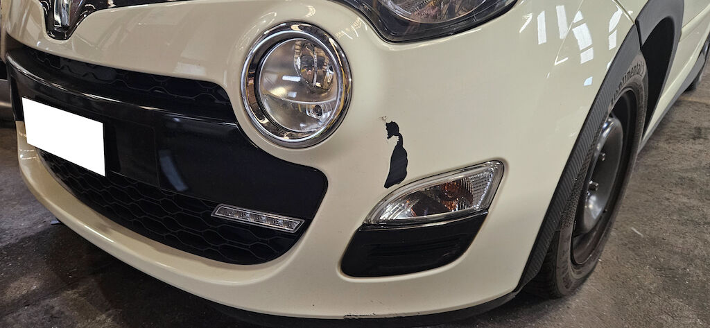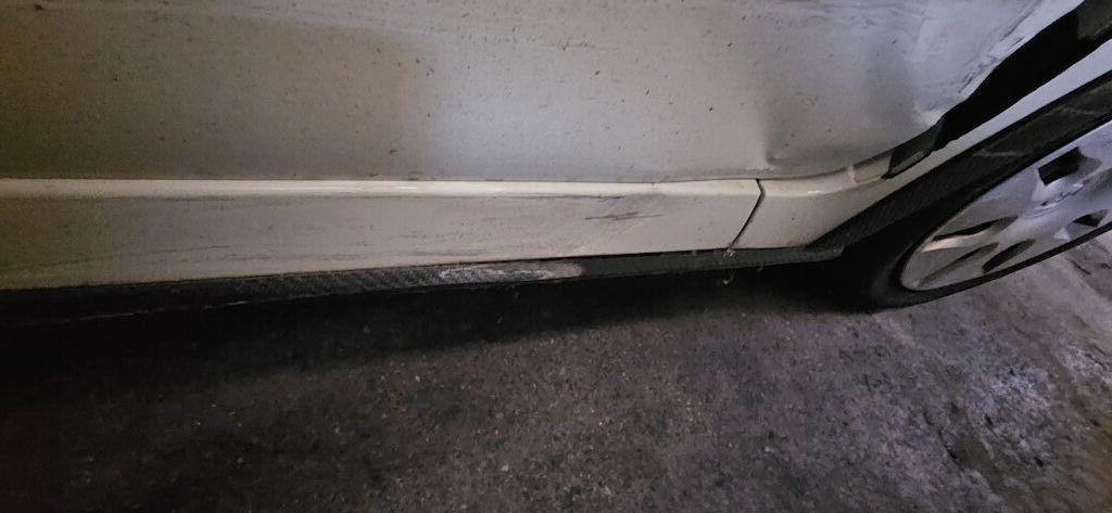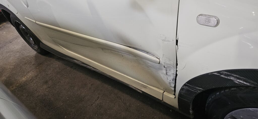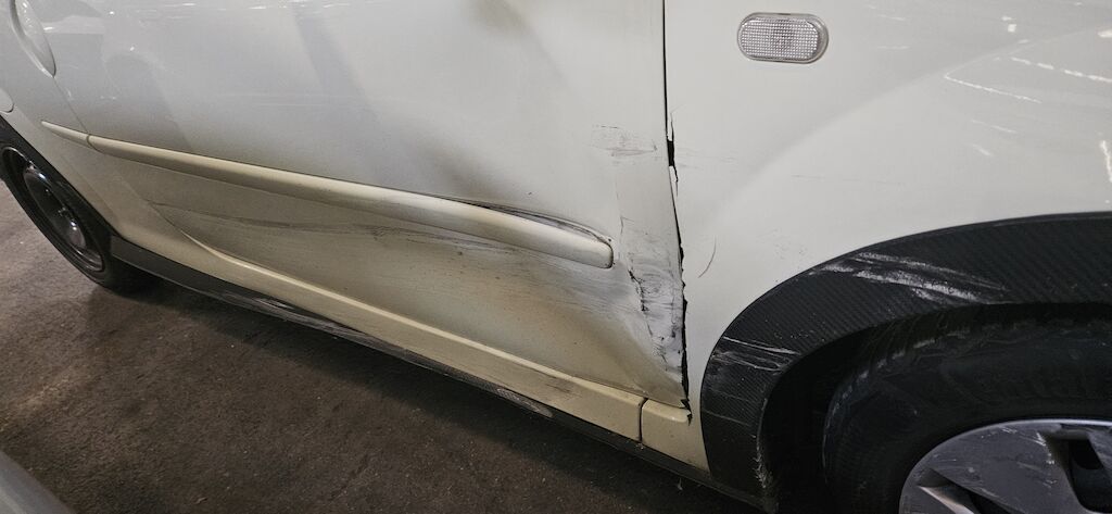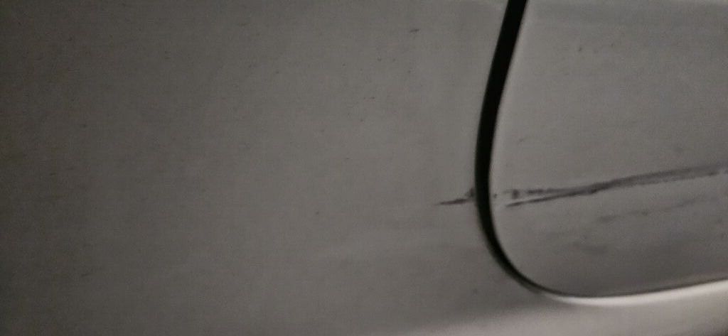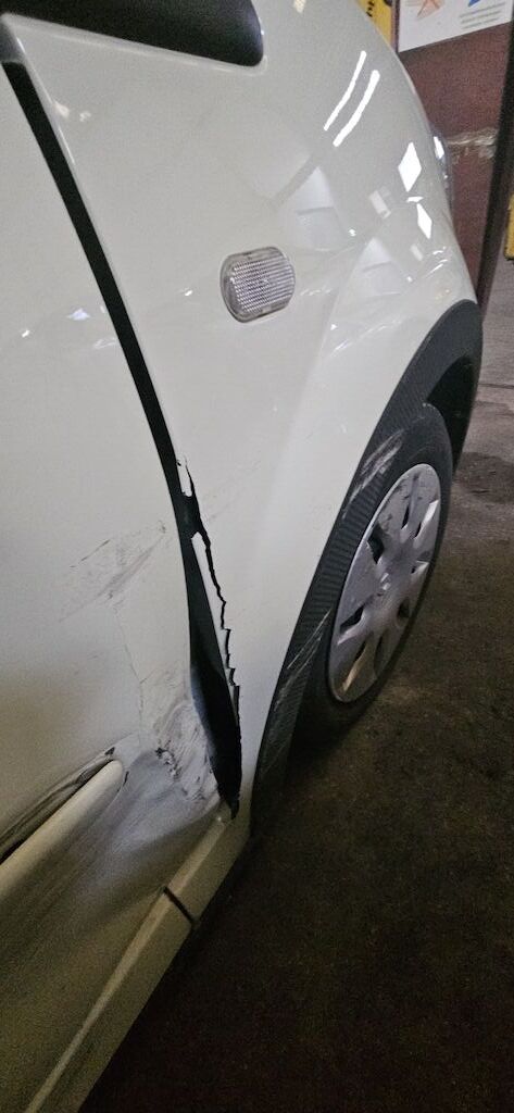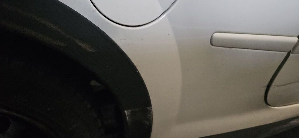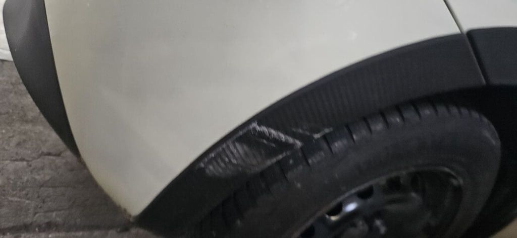 Stossstange HL zerkratzt, Stossstange VL Lack löst sich ab, Radlaufverbreiterung HL zerkratzt.