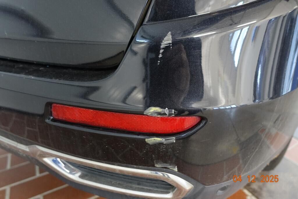 Die Stossstange HL sowie alle angrenzenden Bauteilen/Zierleisten sind zerkratzt. Die Hinterachse HL zeigt offensichtlich eine Deformation auf.