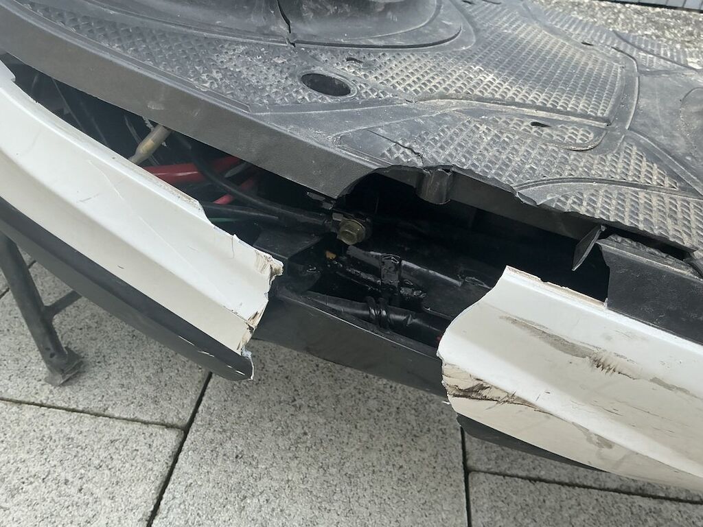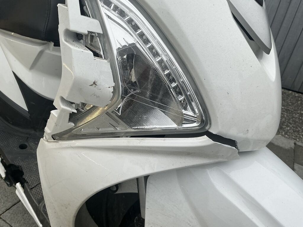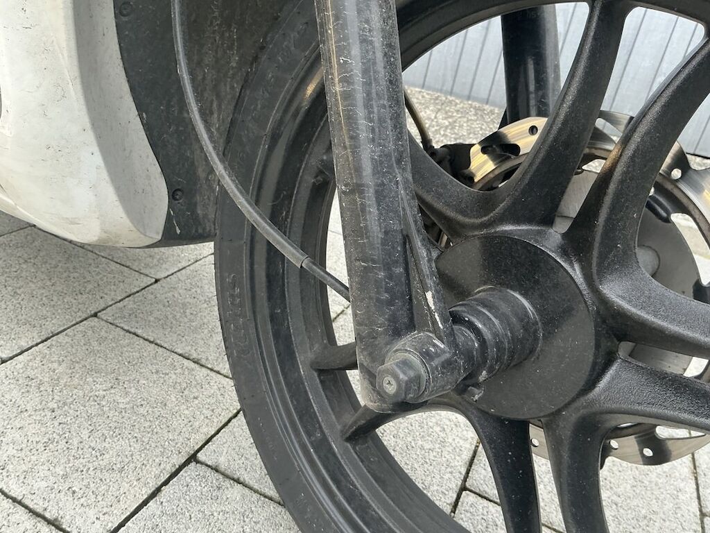 Leviers de frein, embout de guidon, guidon, rétroviseur, repose pieds, carénage avant et fourche avant endommagés. Témoin de pression d’huile reste allumé cause inconnue.