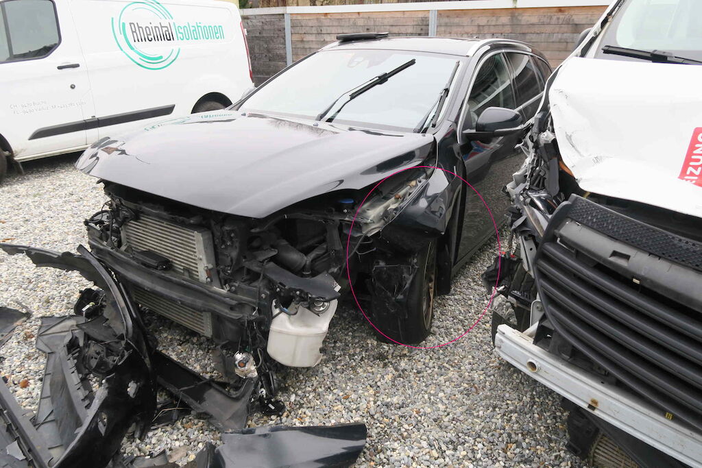 Felge VL beschädigt, Schweller rechts, Unterboden Risiko, Motor läuft stottert , Gurtstaffer ausgelöst