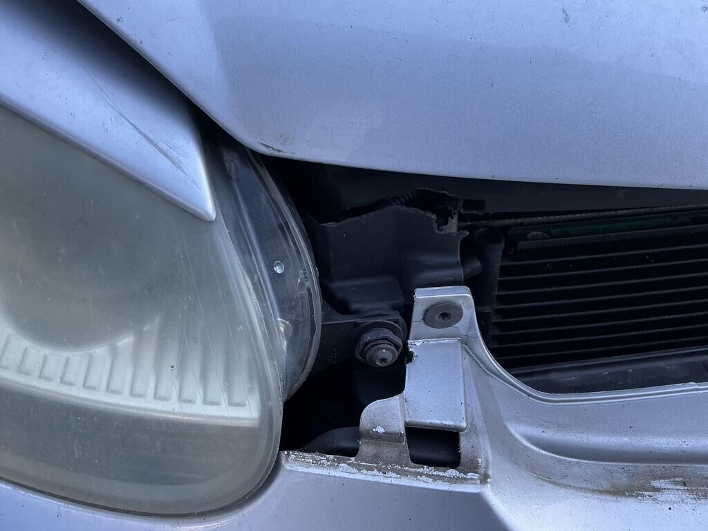 Pare-chocs avant, projecteur, porte serrure et radiateurs cassés.
