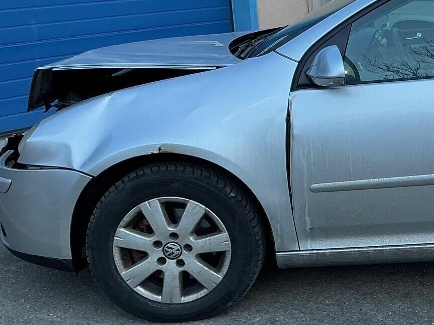 Capot, aile avant gauche et porte avant gauche enfoncés.
