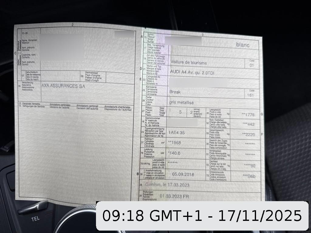 Licht: Drittes Bremslicht, Höhenverstellbare Gurten vorne, Bremsbelag-Verschleissanzeige, Elektrische Fensterheber vorne + hinten, Gepäcktrennnetz, Kindersicherung an den hinteren Türen, Lackierung: Uni-Lackierung, Garantie: 2 Jahre ohne Kilometerbegrenzung (ab 1. Inv.), Media: MMI Radio plus, Dachreling eloxiert, Radiovorbereitung, Scheibenantenne, Ent- störung und 8 LS, Warndreieck, Gurtstraffer vorne, Gepäckraumklappe automatisch öffnend und schliessend, Klima: Pollenfilter (Staubfilter), Geschwindigkeitsbegrenzer, Servotronic, Dekorelemente Aluminium Ellipse, Rücksitzlehne geteilt abklappbar, Partikelfilter und Oxydationskatalysator, Aktive Kopfstützen, 3-Punkt-Sicherheitsgurte auf allen Plätzen, Fahrwerk: Dynamisches Fahrwerk, Lenkrad: Lenkrad längs- und höhenverstellbar, Drehzahlmesser, Ablagen in den Türen, Wartungsintervall-Anzeige, Antiblockiersystem (ABS), Radwechselwerkzeug, MMI basic, Sitze: Vordersitze manuell verstellbar, Polster: Stoff-Ausstattung, Xenon Plus-Scheinwerfer, Bremsenergie-Rückgewinnung, Tageskilometerzähler, Bordcomputer, Audi drive select, Scheibenwischer vorne mit Intervall, Aussenspiegel rechts und links beheizbar und elektrisch verstellbar, Wärmeschutzverglasung, Teppichfussmatten vorne und hinten, Paket: Glanzpaket, Kindersitzvorrichtung ISOFIX mit Deaktivierungsschalter für Beifahrer- Airbag, Lenkrad: Leder-Multifunktionslenkrad im 3-Speichen-Design, Licht: Licht- und Regensensor, Sequentielles 7-Gang-Getriebe mit Automatikfunktion, 3 Kopfstützen hinten, Aschenbecher und Zigarettenanzünder, Airbag: Window-Kopfairbags, Radschrauben mit Diebstahlsicherung, Leseleuchten vorne, Räder: Reifendruck-Kontrollanzeige, Assist: Bremsassistent (BAS), Media: Bluetooth-Schnittstelle, Nebelscheinwerfer, Autobahnblinkfunktion, Notrufsystem, Sicherheitslenksäule, Airbag: Airbag Fahrer und Beifahrer, Leuchtweitenregulierung elektrisch, Allradantrieb permanent, Räder: Reifenreparatur-Set (Tire Fit), Wegfahrsperre elektronisch, Antriebsschlupfregelung (ASR), Türgriffe aussen in Wagenfarbe, Media: Digitaler Radioempfang (DAB), Stop/Start-Technologie, Cupholder vorne, Brillenablage, Servolenkung geschwindigkeitsabhängig, Innenlicht-Abschaltverzögerung, Befestigungsösen im Laderaum, Fahrer-Informationssystem, Stossstangen und Aussenspiegel in Wagenfarbe, Aussentemperaturanzeige, Wassertemperaturanzeige, Mittelarmlehne vorn in Kunstleder schwarz mit Kontrastnaht in Rot, Sitze: Vordersitze höhenverstellbar, Leichtmetallräder im 5-Speichen Y-Design 7,5Jx17, Lichtwarnsummer, Digital Uhr, Wagenheber, Elektronische Differentialsperre (EDS), Heckscheibenheizung, Elektronische Parkbremse, Schlüsselloser Motorstart, Licht: Tagfahrlicht, Seitenairbag für Fahrer und Beifahrer, Sonnenblende zweifach, Audi pre sense city, Seitenaufprall-Schutzsystem, Klima: Klimatisierungsautomatik, Getönte Scheiben, Licht: Nebelschlussleuchte, Zentralverriegelung mit Fernbedienung, Sitze: Sportsitze vorne, Elektronisches Stabilitäts-Programm (ESP), Kofferraumfernentriegelung