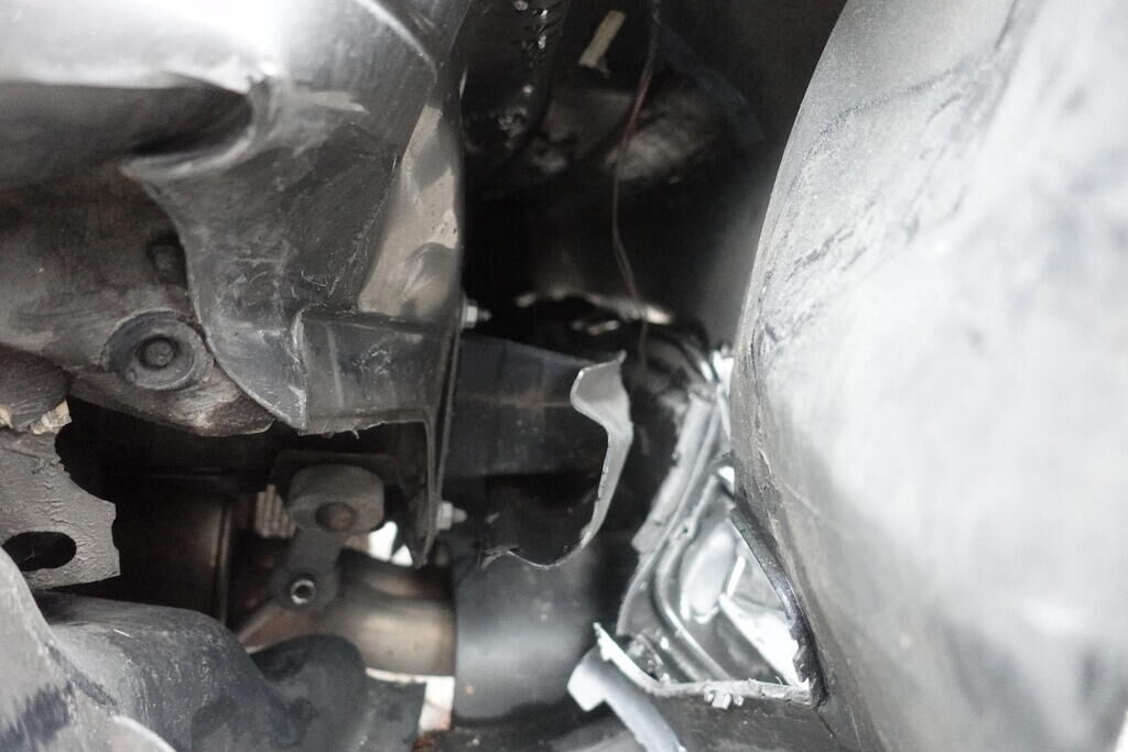 Aile, jupe, renfort, pare-chocs, spoiler, tôle Intérieur ; endommagés.