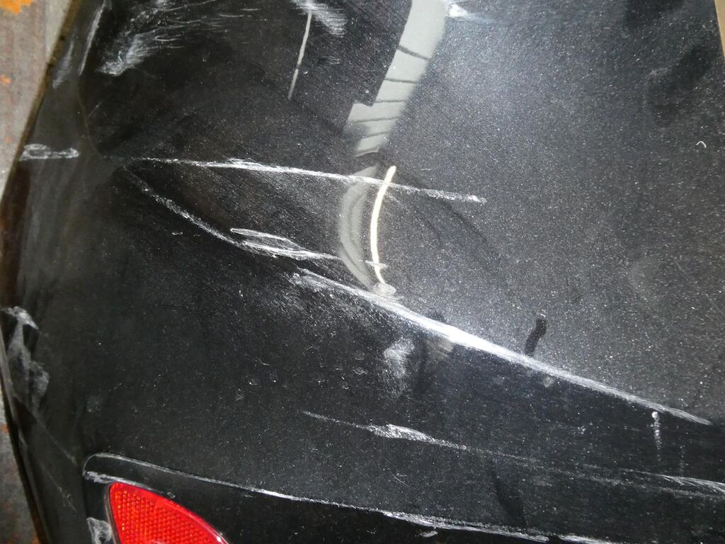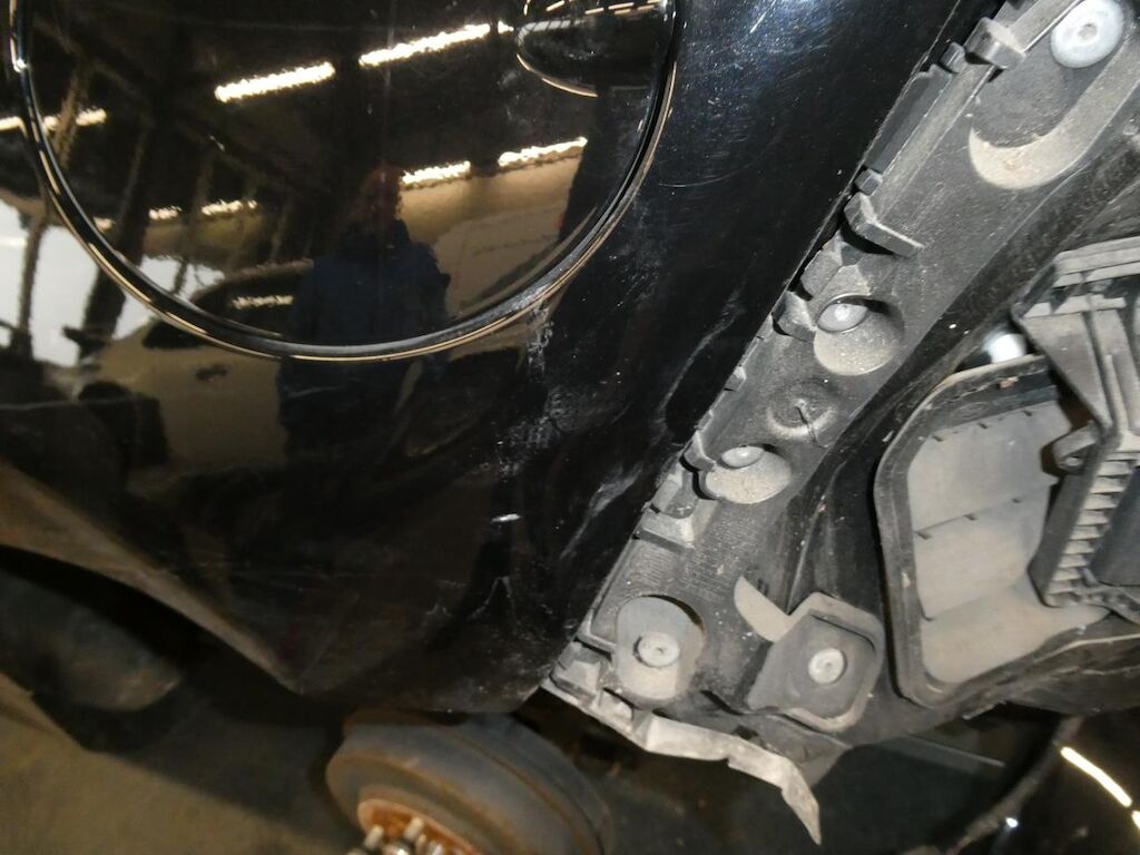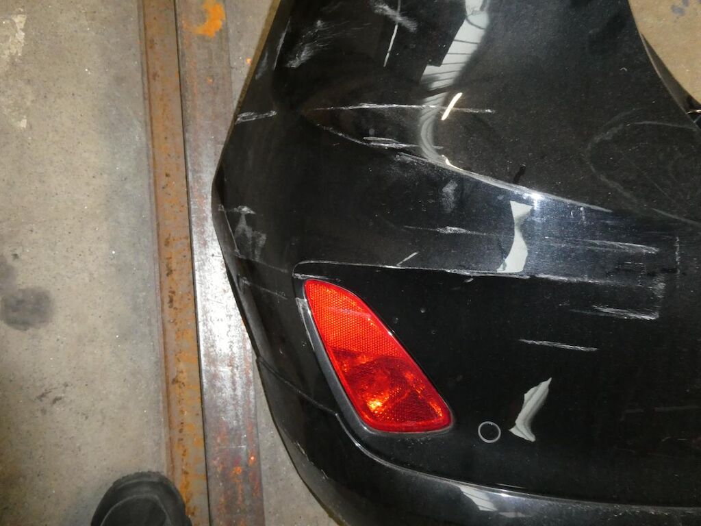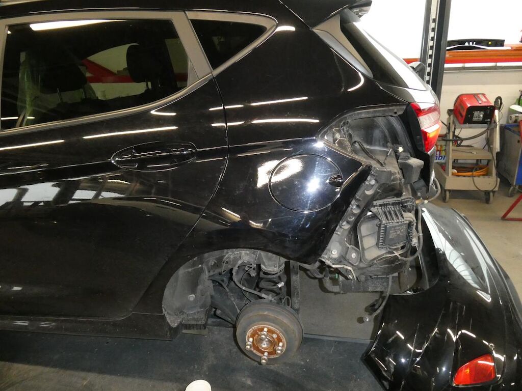 Stossfänger hinten, Heckleuchte links, Seitenwand h.l., Innenkotflügel h.l., Lampenblech h.l., Sensor Totwinkelassistent h.l., eingebeult und zerkratzt