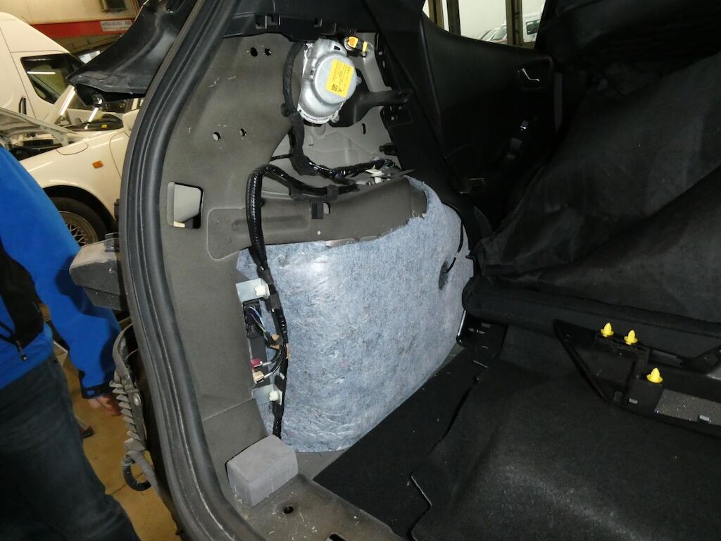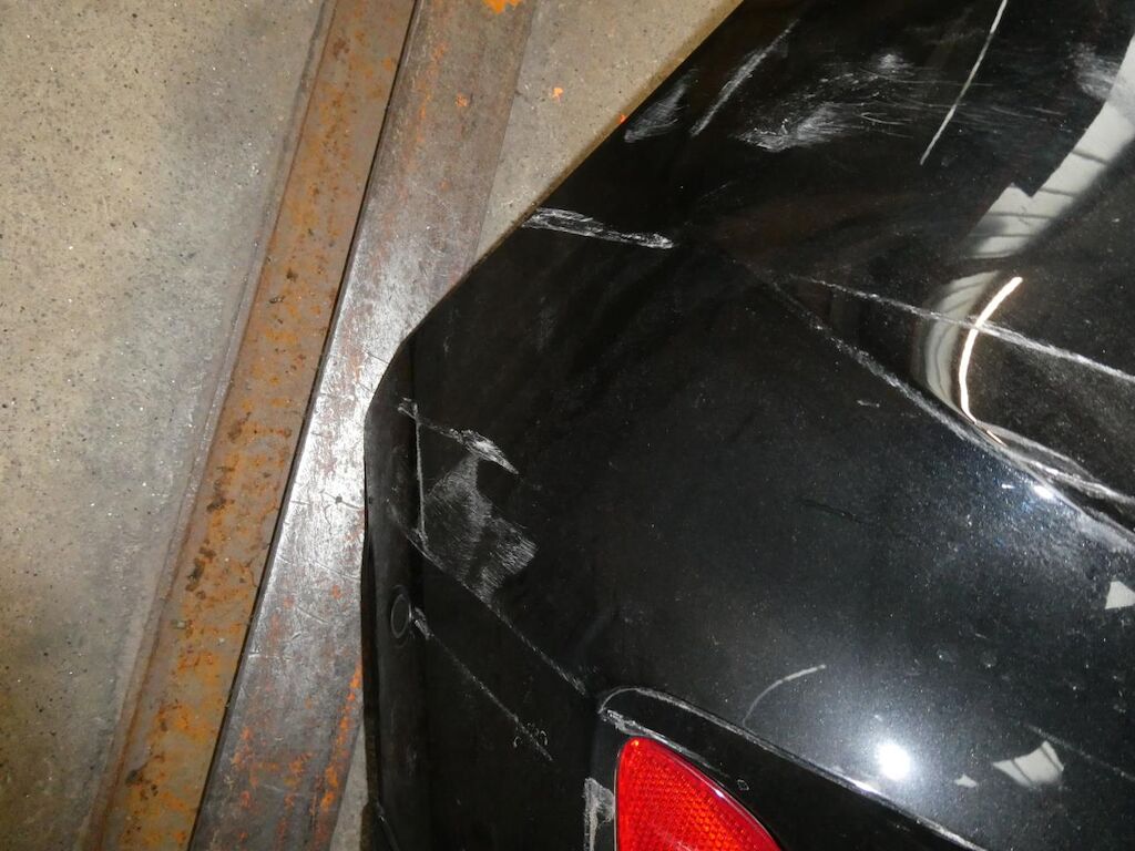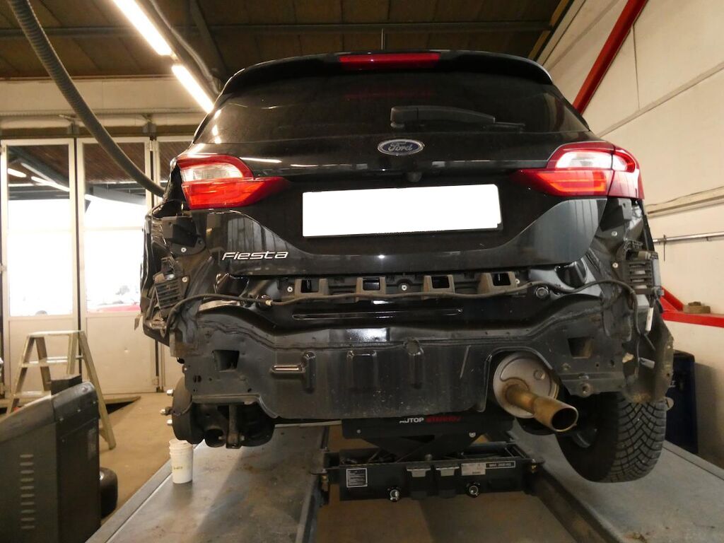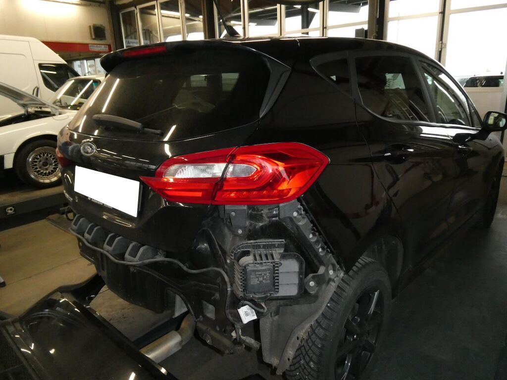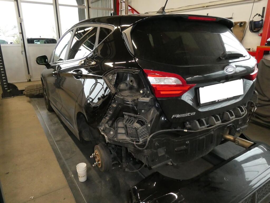 Stossfänger hinten, Heckleuchte links, Seitenwand h.l., Innenkotflügel h.l., Lampenblech h.l., Sensor Totwinkelassistent h.l., eingebeult und zerkratzt