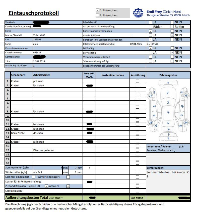 | -Keine technische Prüfung (Werkstatttest) vorgenommen -Diverse Schäden an Karosserie/Lack. -Fahrzeug ab Platz, ohne Garantie und Aufbereitung. – Div. Kratzer und Dellen am gesamten Fahrzeug. – Letzter Service am 02.04.2025/120539KM -MFK Fällig &Service -Aufbereitung nötig |