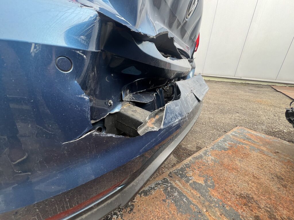 Heck mit Anbauteilen eingedrückt, Verkleidung mit Anbauteilen, Träger, Heckblech, Heckklappe mit Anbauteilen, etc. beschädigt. Seitenwand l. und r. einstaucht. Dellen in den Dachrahmen oben.