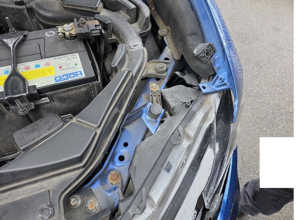 Frontschaden li: Stossstange, Nebelleuchte inkl. Abeckung, Zierstab, Kühlergrill, Scheinwerfer, Kotflügel li/re, Radlaufblende, Motorhaube inkl. Scharniere, Pralldämpfer, Schlossträger li, Luftführung, Kühlerträger, etc. beschädigt.